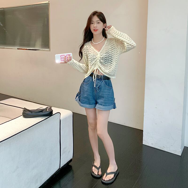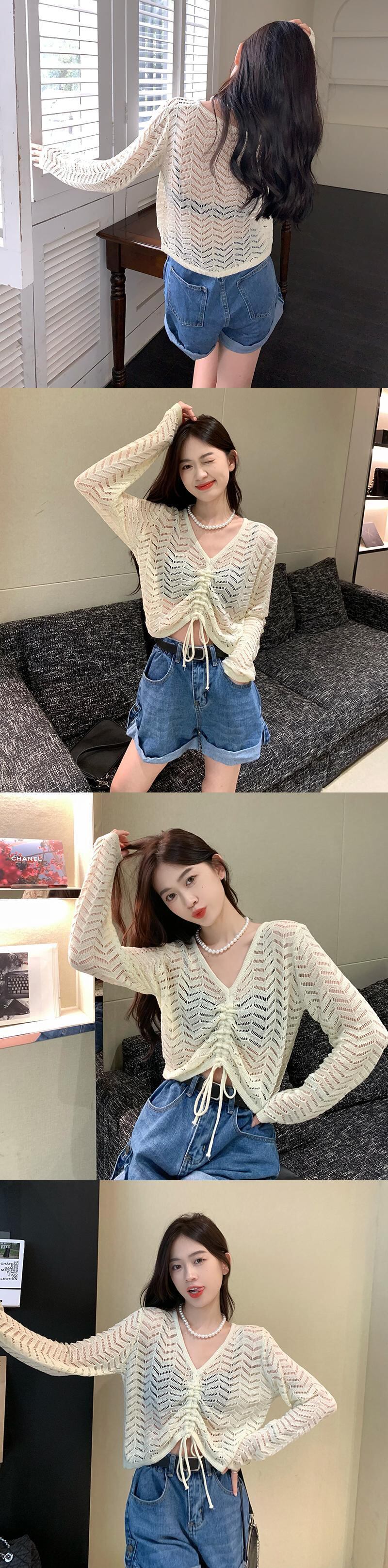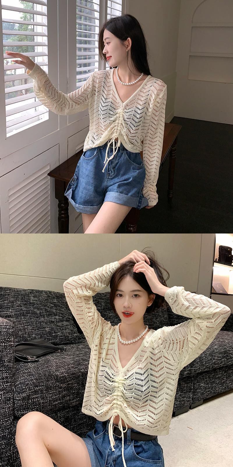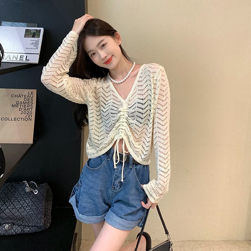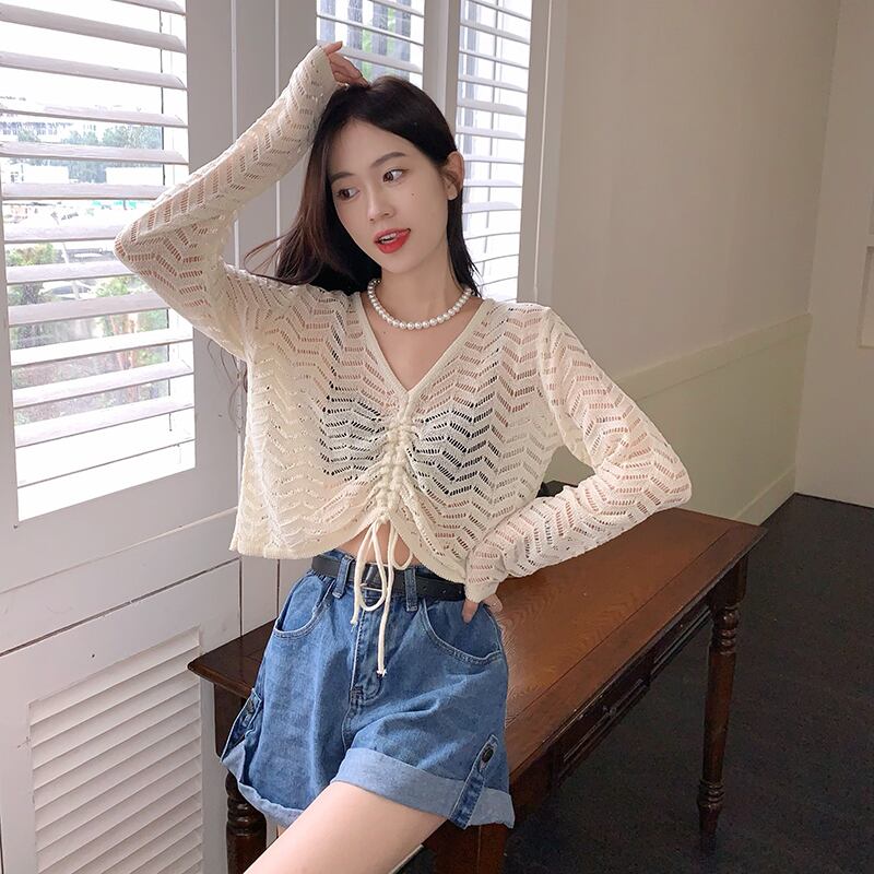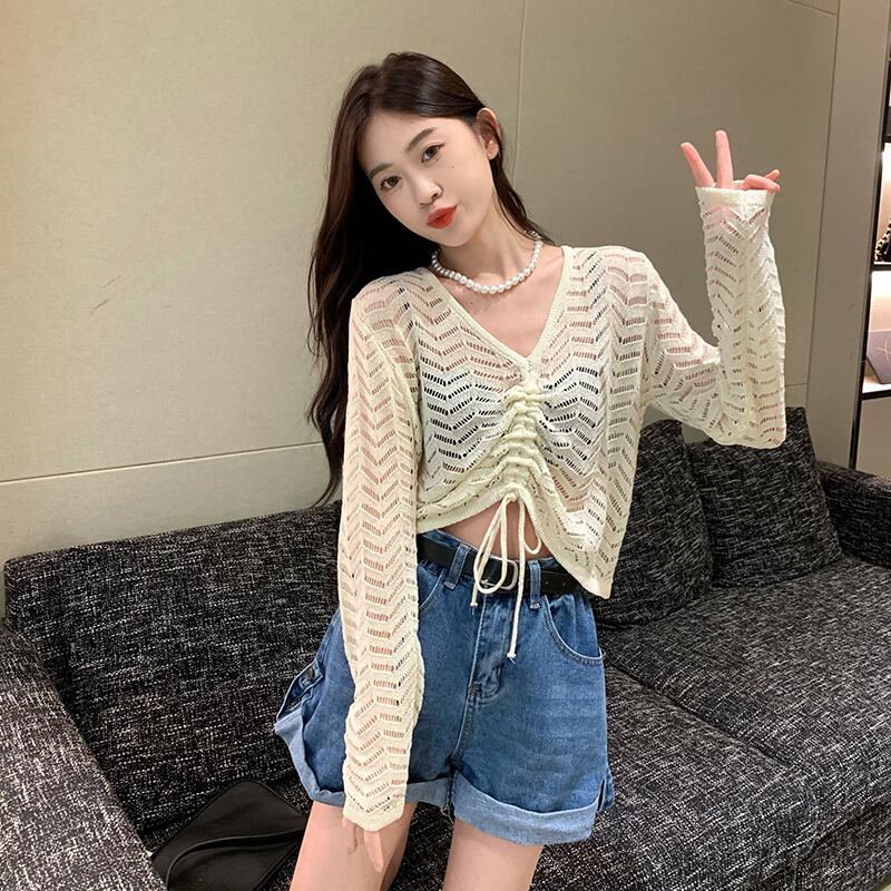 ニット サマー薄手ブラウス ルーズVネックショートトップス ロング 大人ガーリー スウィート キュート カジュアル 夏物 s576189425526700