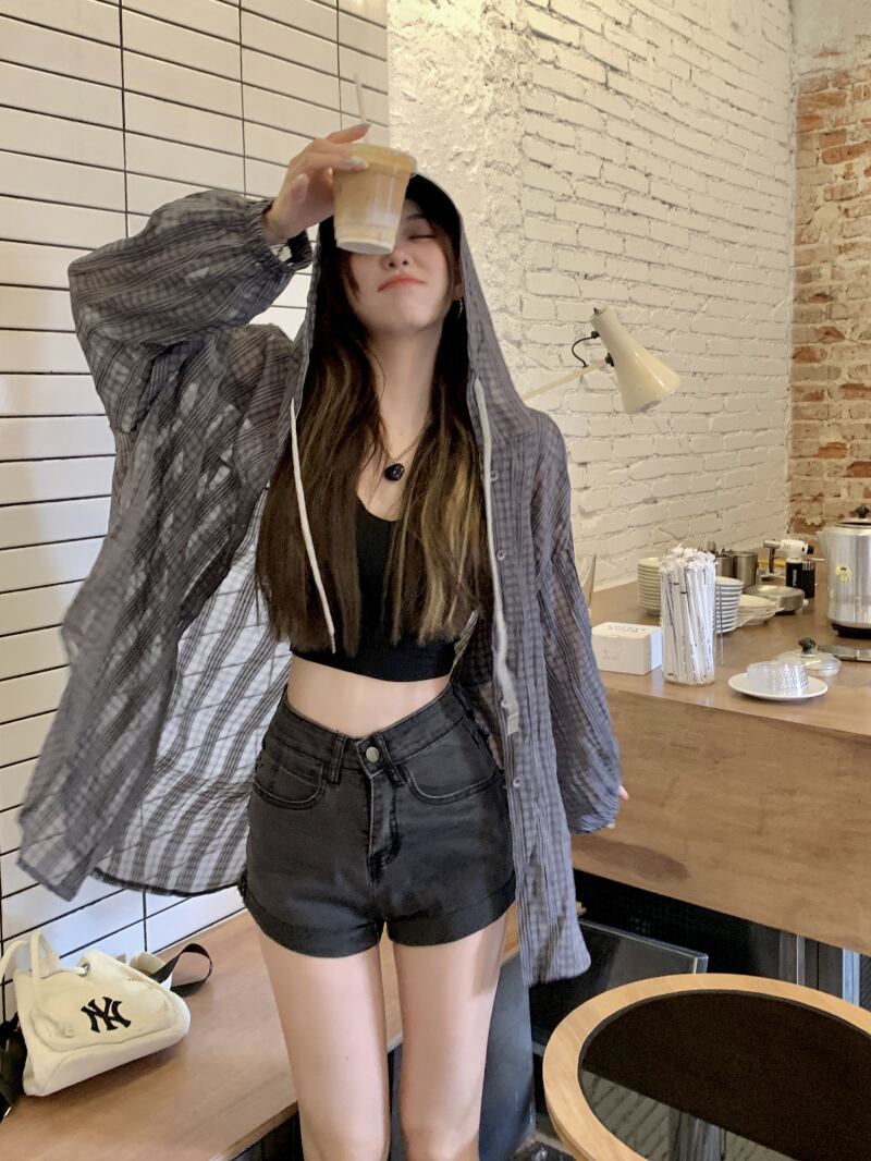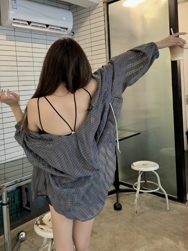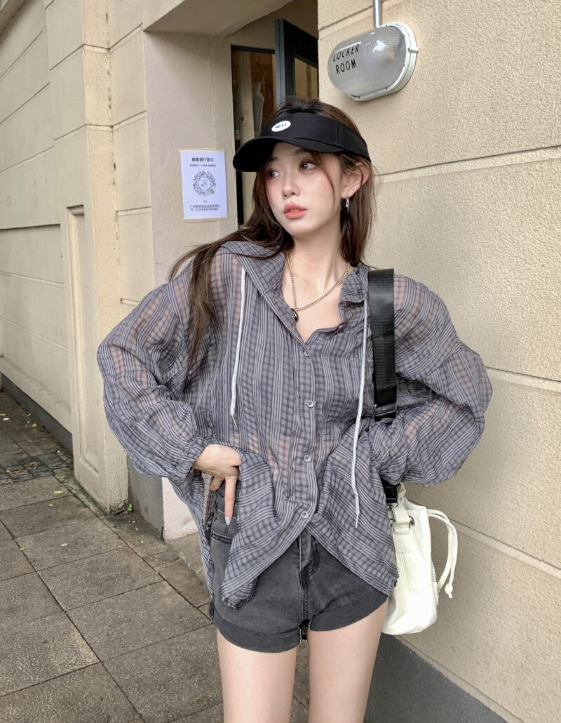 フード格子柄シャツ サマールーズトップス ロング 夏物 s576165668098738