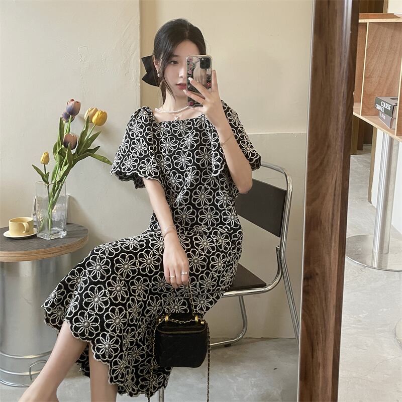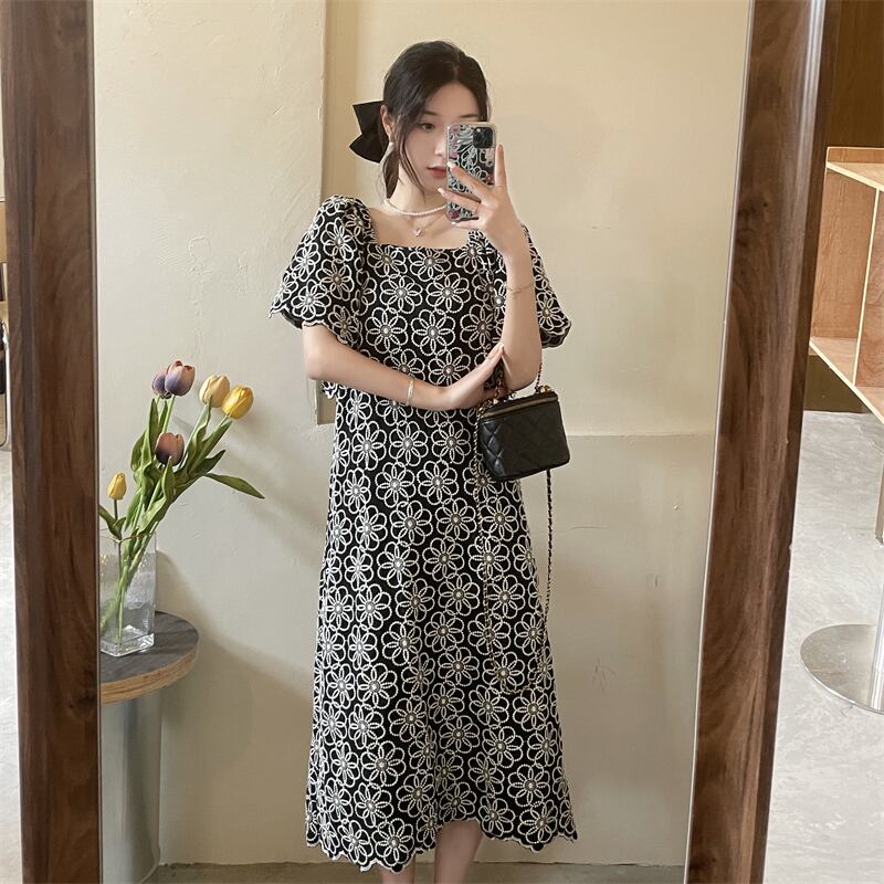 ロングスカート サマースタンダードカラーフローラルドレス レトロ 夏物 花柄 スクウェア s576186008661830