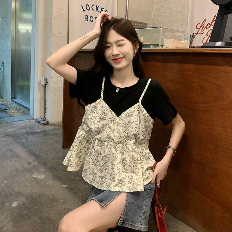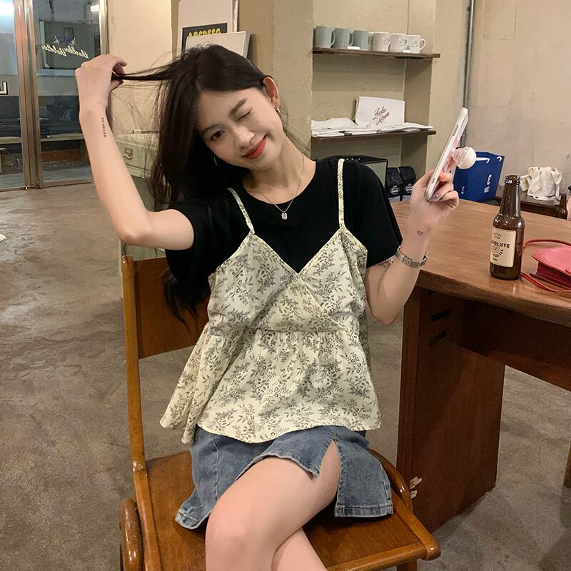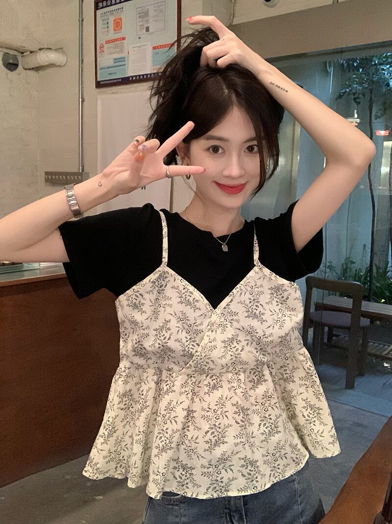 フローラルTシャツ サマートップス 夏物 花柄 ステッチ s5761173147275