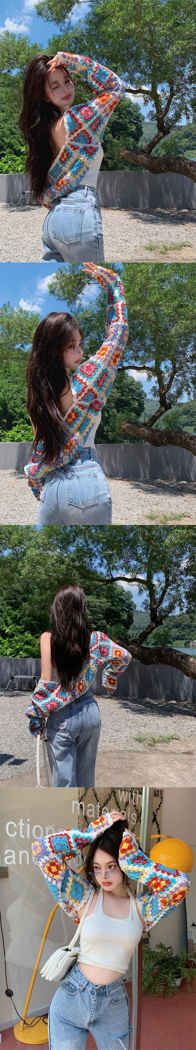 ニットカーディガンサマー薄手スタンダードショートトップス ロング レトロ 夏物 s576145671855219