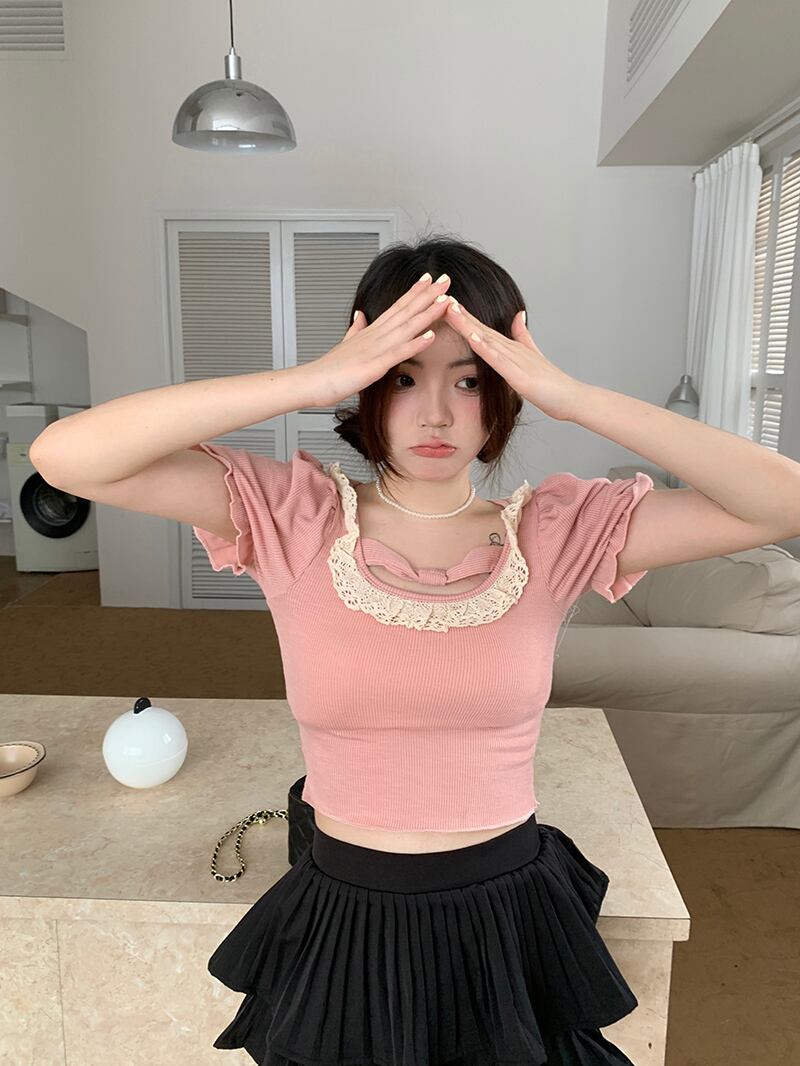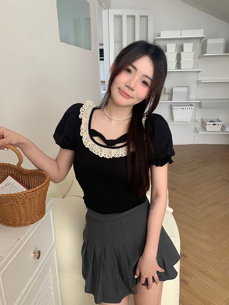ブラックスリーブショートTシャツ サマースリムトップス 夏物 s576170639124360