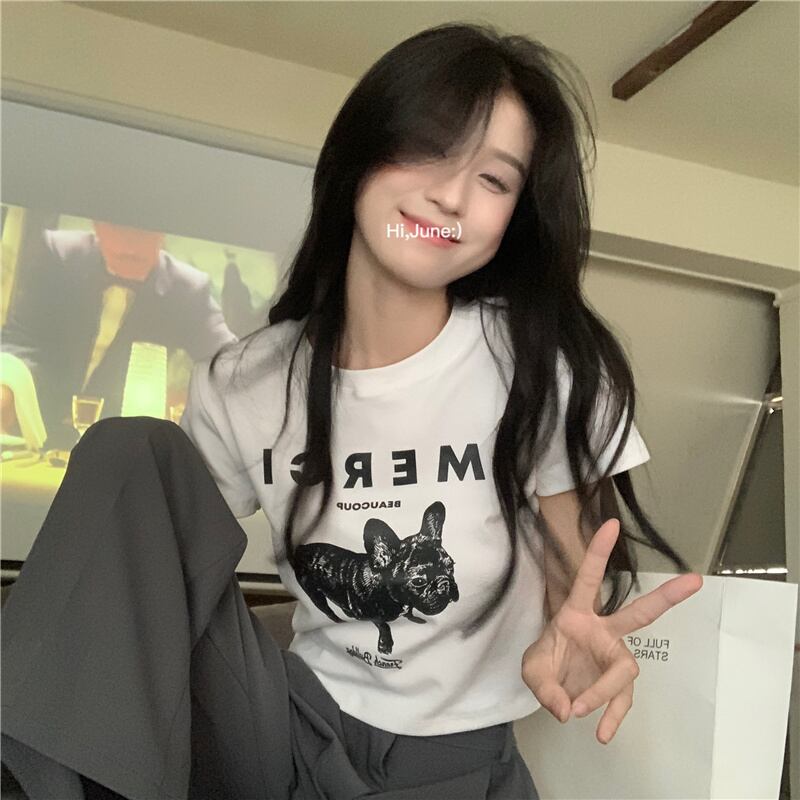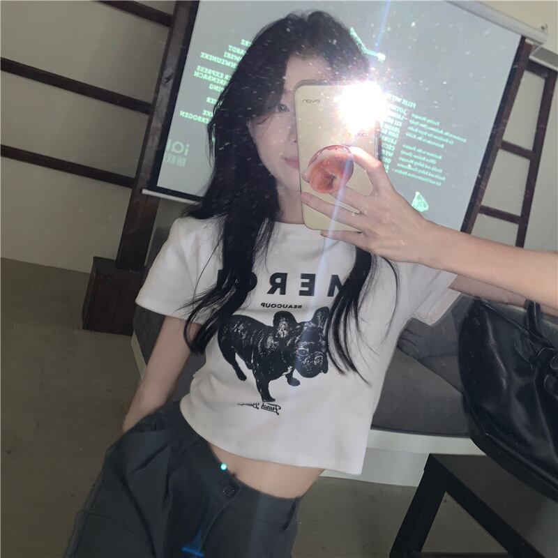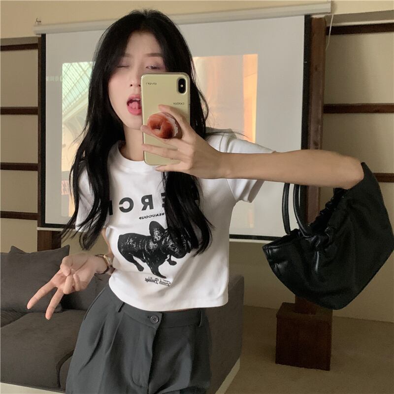 ホワイトショートTシャツ シャツ サマープリント柄ウェストスタイルトップス 夏物 s576139108864659
