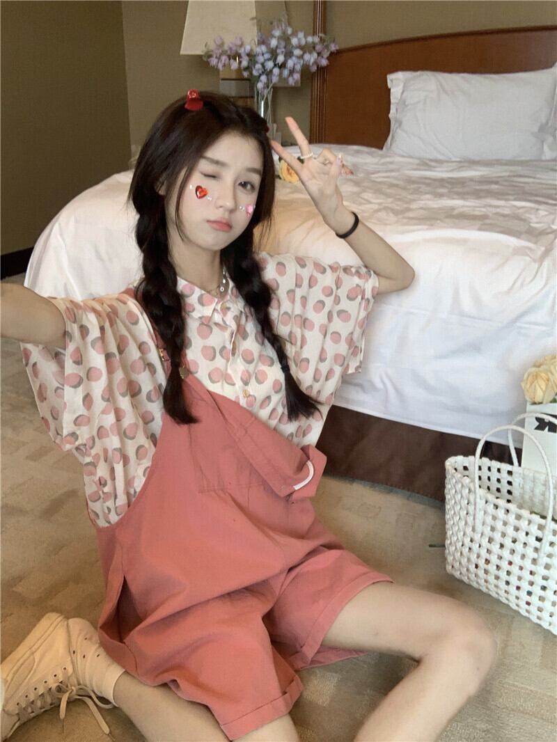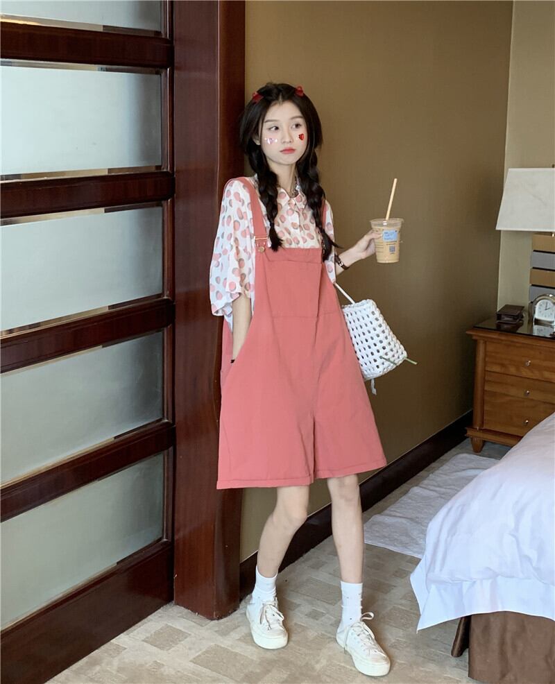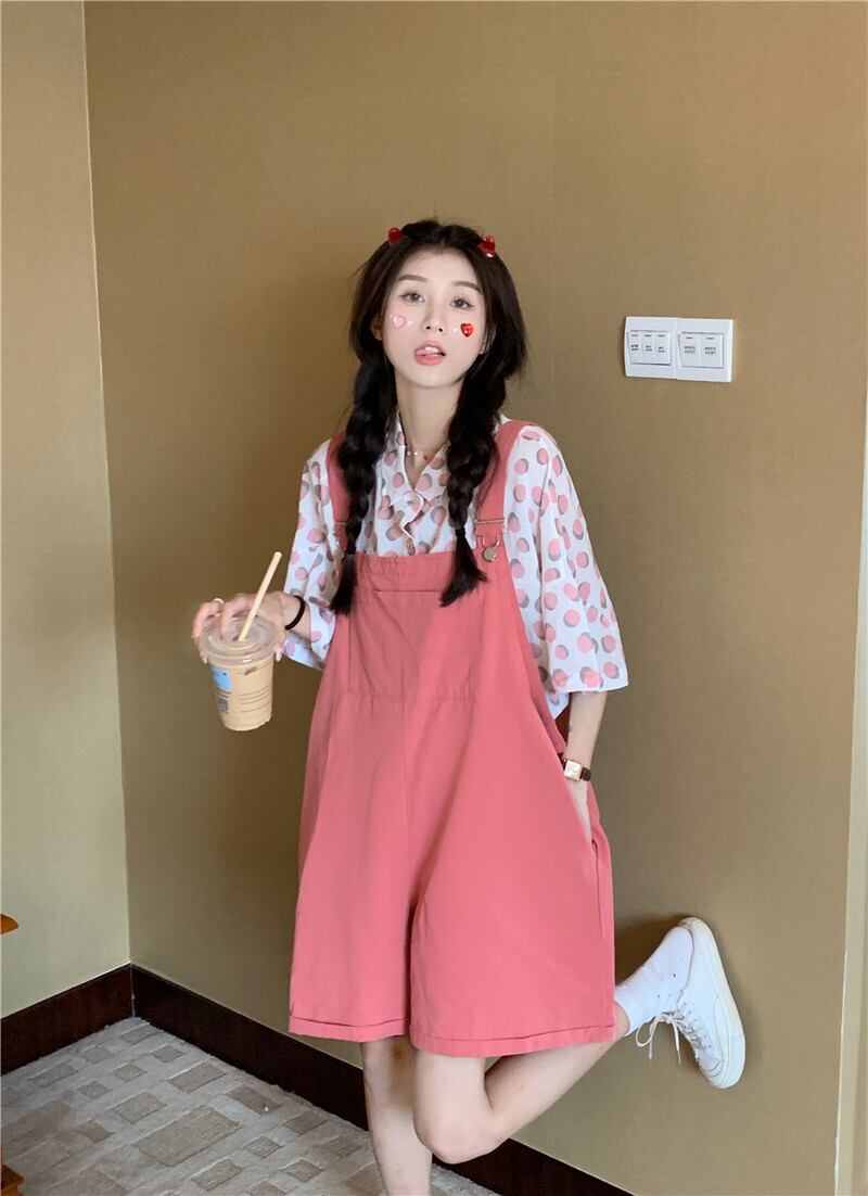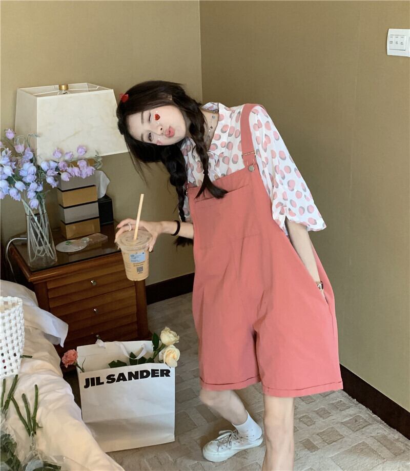 オーバーオール サマー薄手ルーズレッドショーツ ピンク 大人ガーリー スウィート キュート カジュアル 夏物 ブルマー s576136530843363