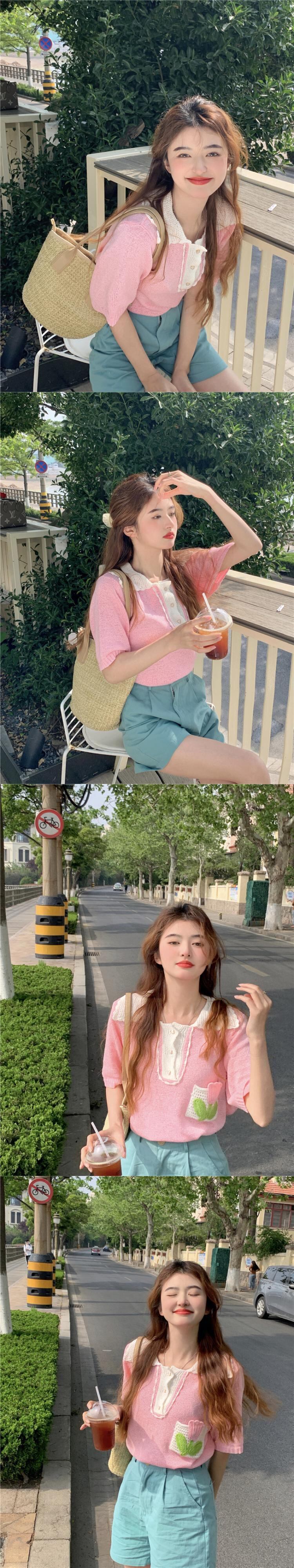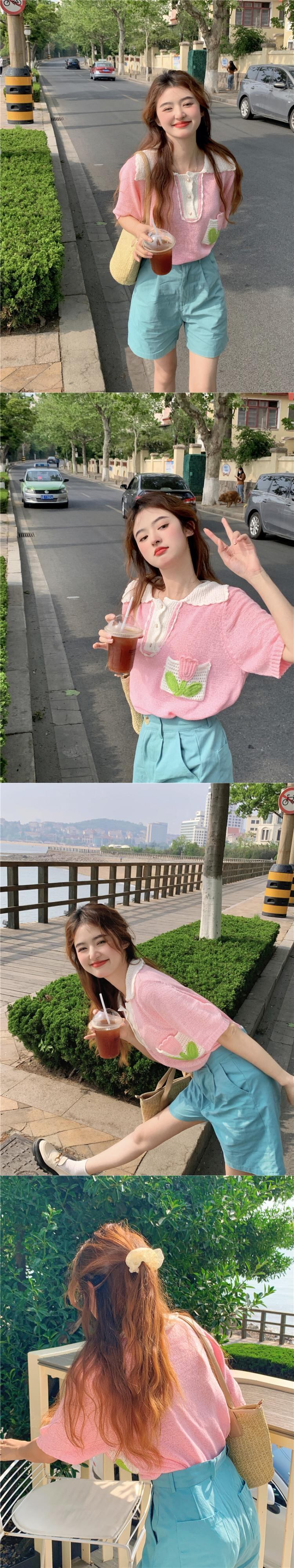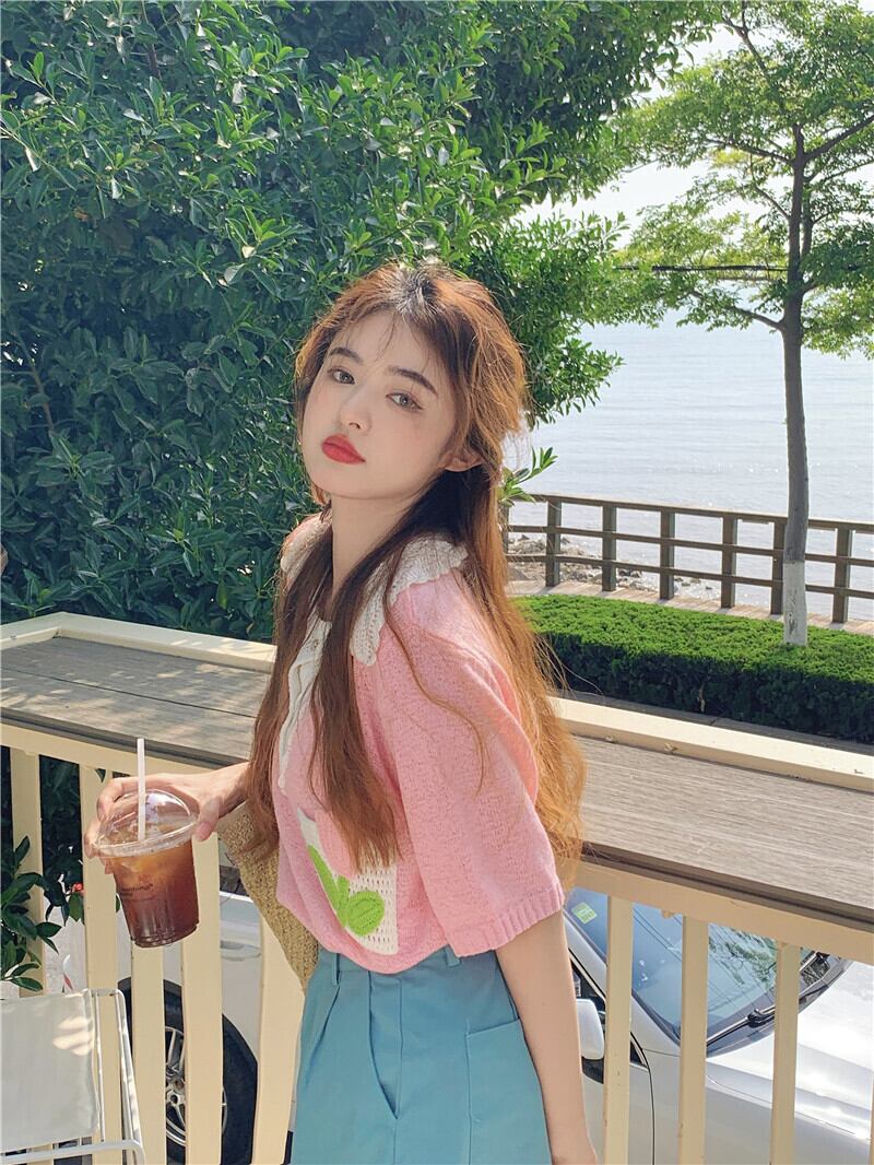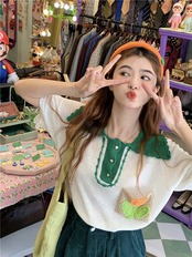 ホワイトカラーニットセーター サマートップス 大人ガーリー スウィート キュート カジュアル 夏物 s576172407536359