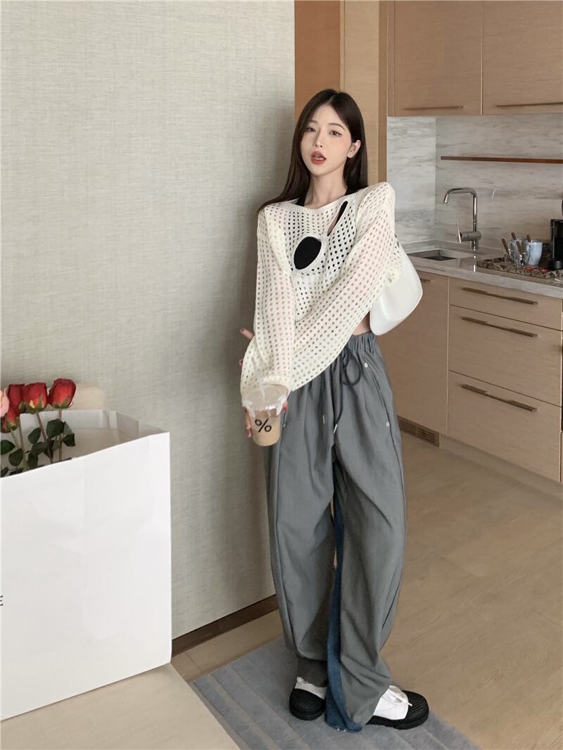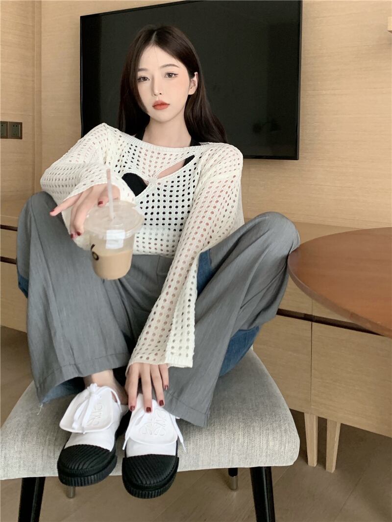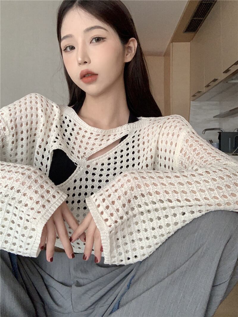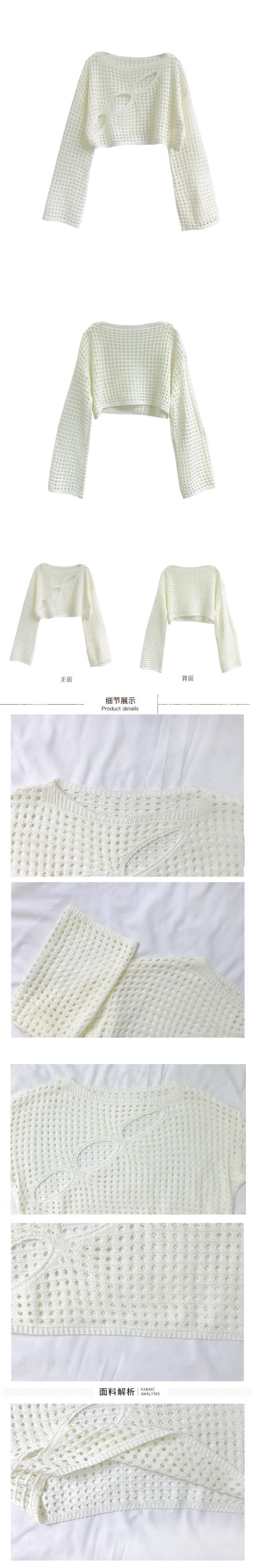 ホワイトニットセーター サマー薄手ブラウス ショートトップス ロング 大人ガーリー スウィート キュート カジュアル 夏物 s576184013284688