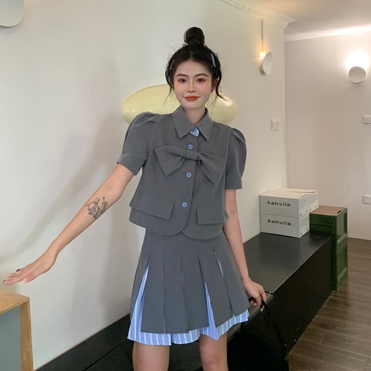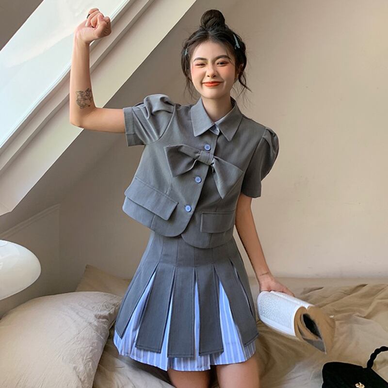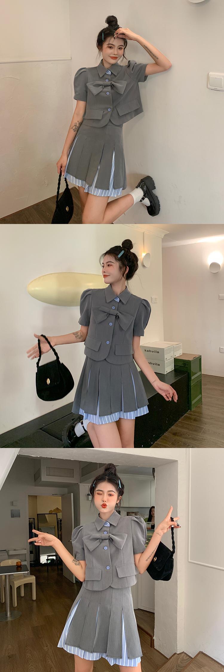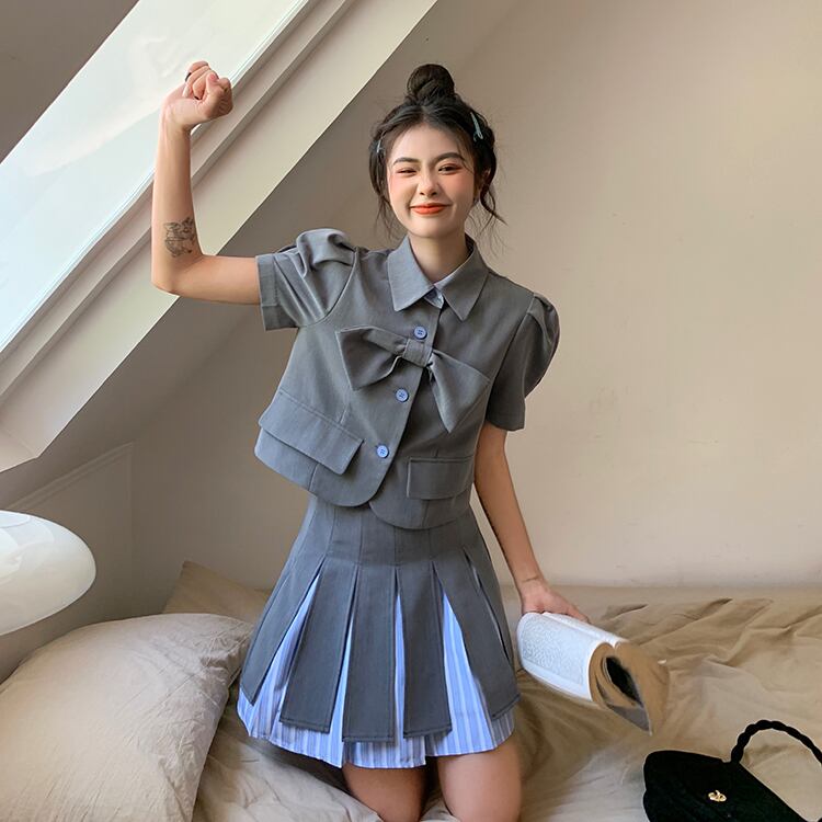 サマーシャツ プリーツスカート レッド 大人ガーリー スウィート キュート カジュアル 夏物 s576126132044508