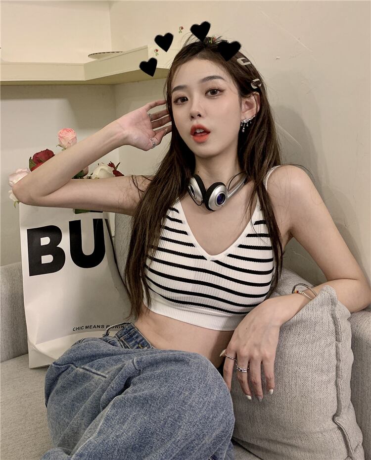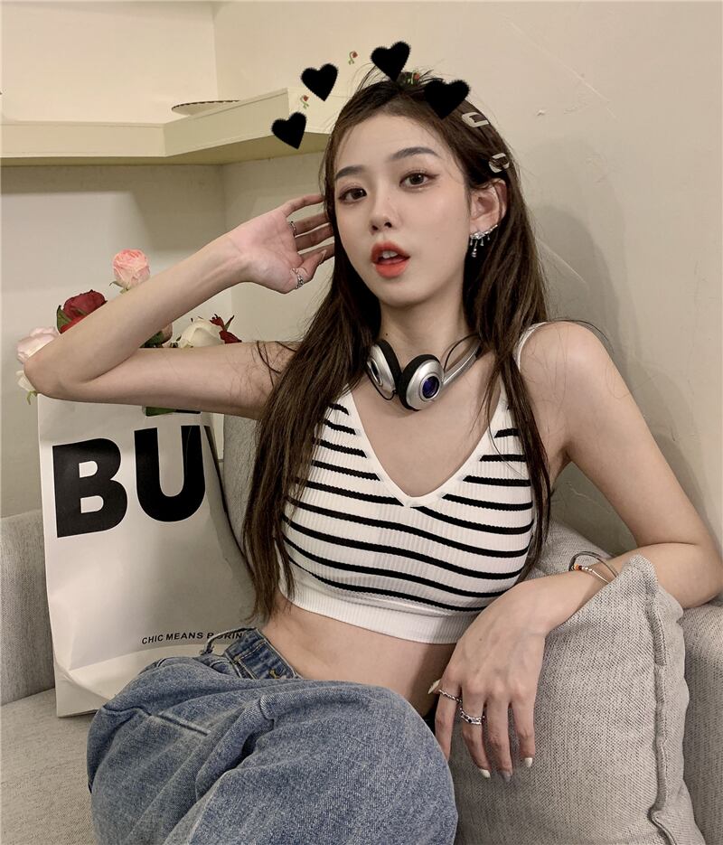 ストライプサマーショートバックトップス 大人ガーリー スウィート キュート カジュアル 夏物 s576179862857399