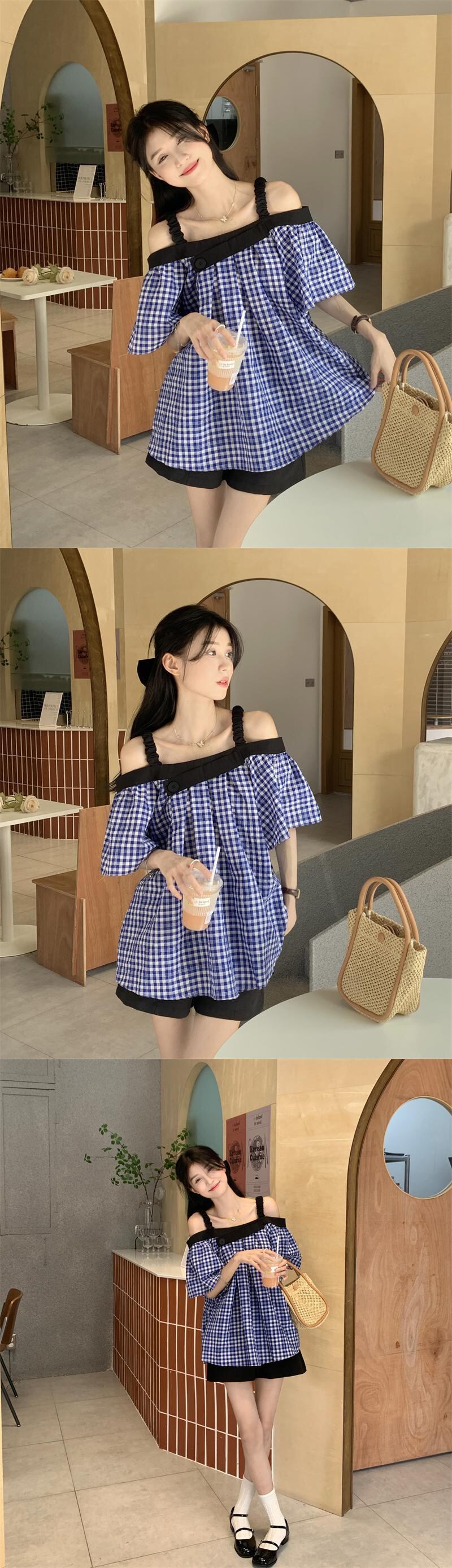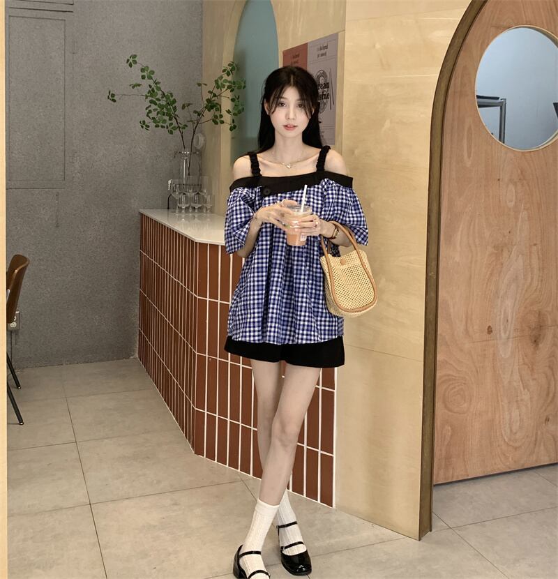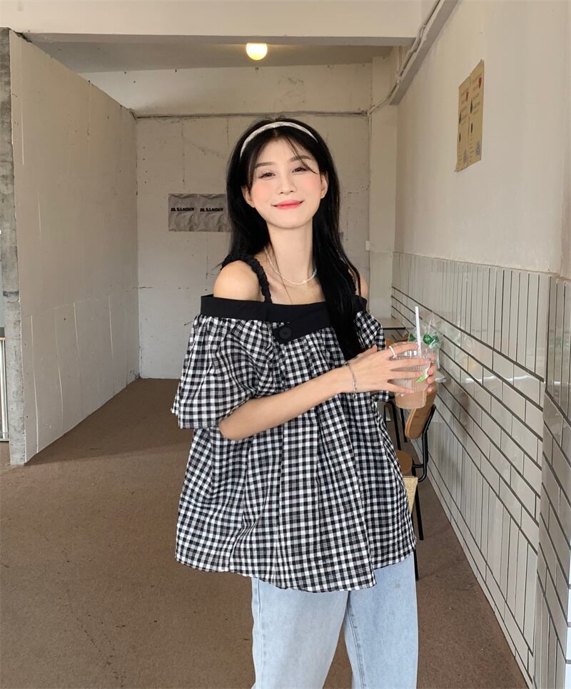 格子柄シャツ サマースタンダードルーズトップス レトロ 夏物 s576194317654348