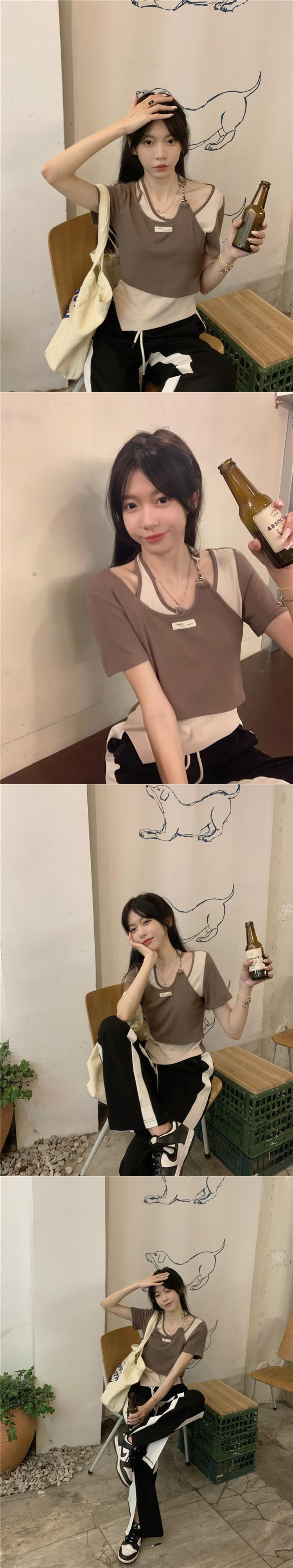 カラーショートTシャツ サマースリムトップス 夏物 s576179911493660