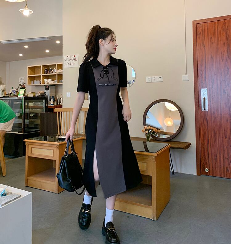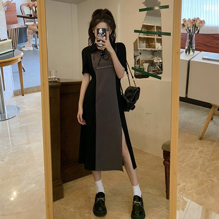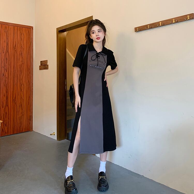 カラードレス サマースタンダードスリットロングスカート レトロ 夏物 s576119797426394