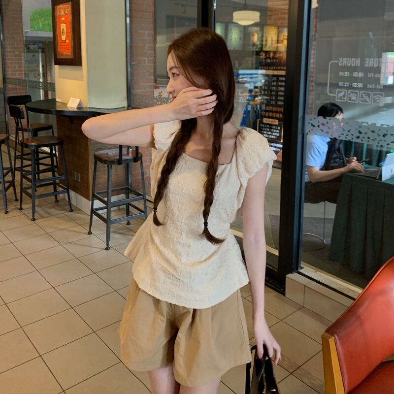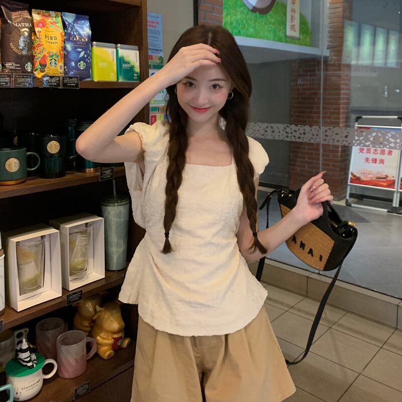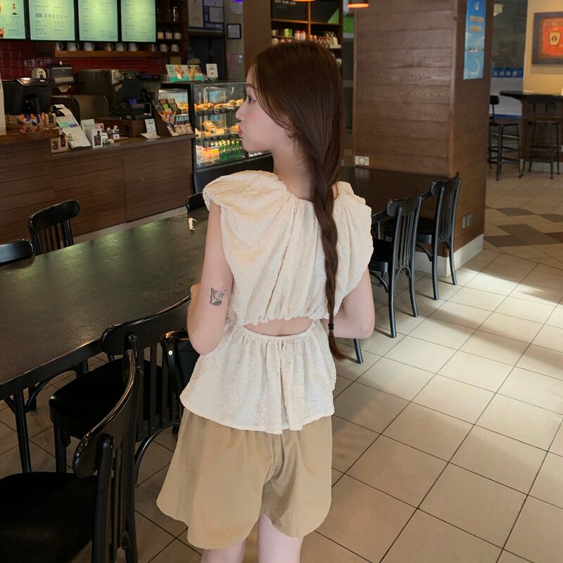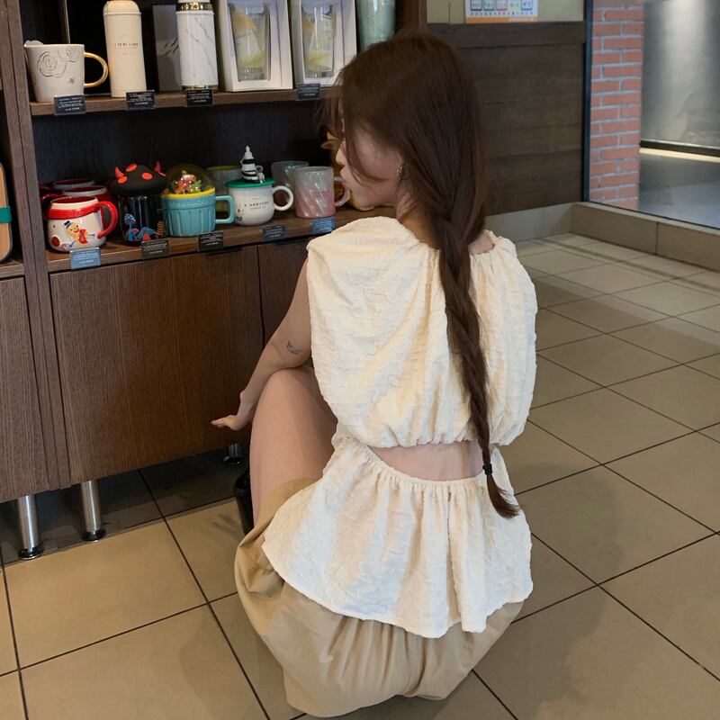カラーウェストバックサマースリムノースリーブシャツ ショートトップス 夏物 スクウェア s576146056867243