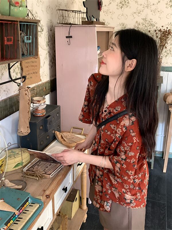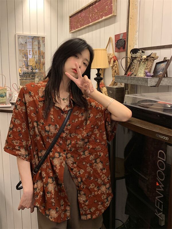 フローラルシャツ サマースタンダードスタイルルーズトップス レトロ 夏物 花柄 s576125882514028