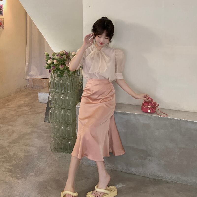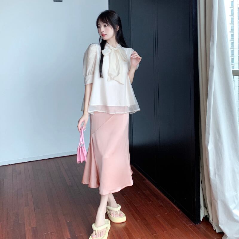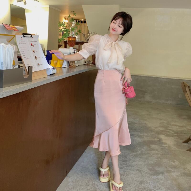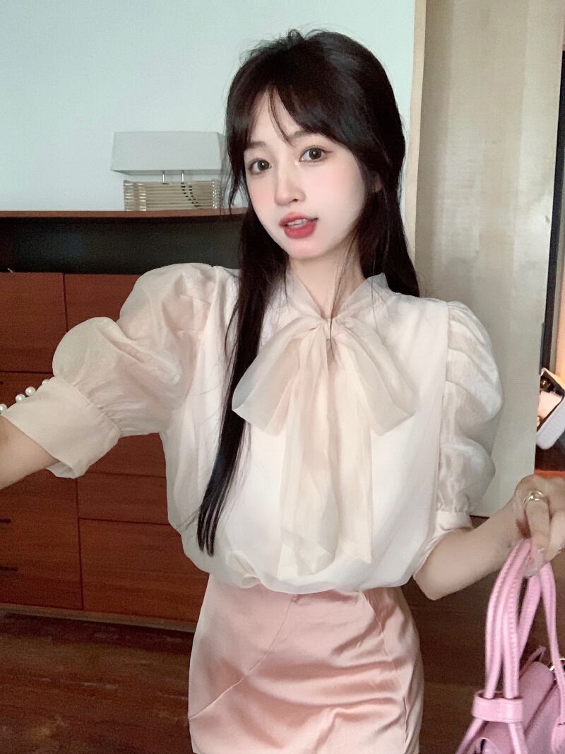 リボンブラウス サマースリーブシャツ 大人ガーリー スウィート キュート カジュアル 夏物 s576150482843786