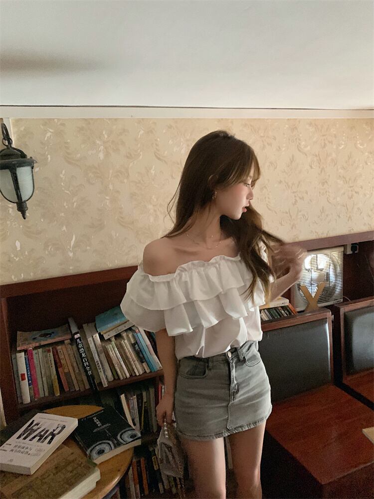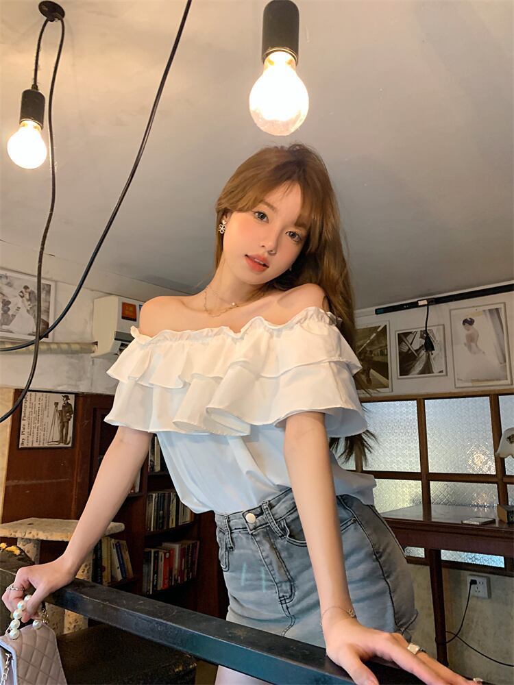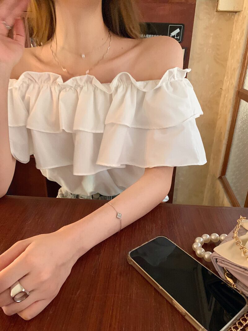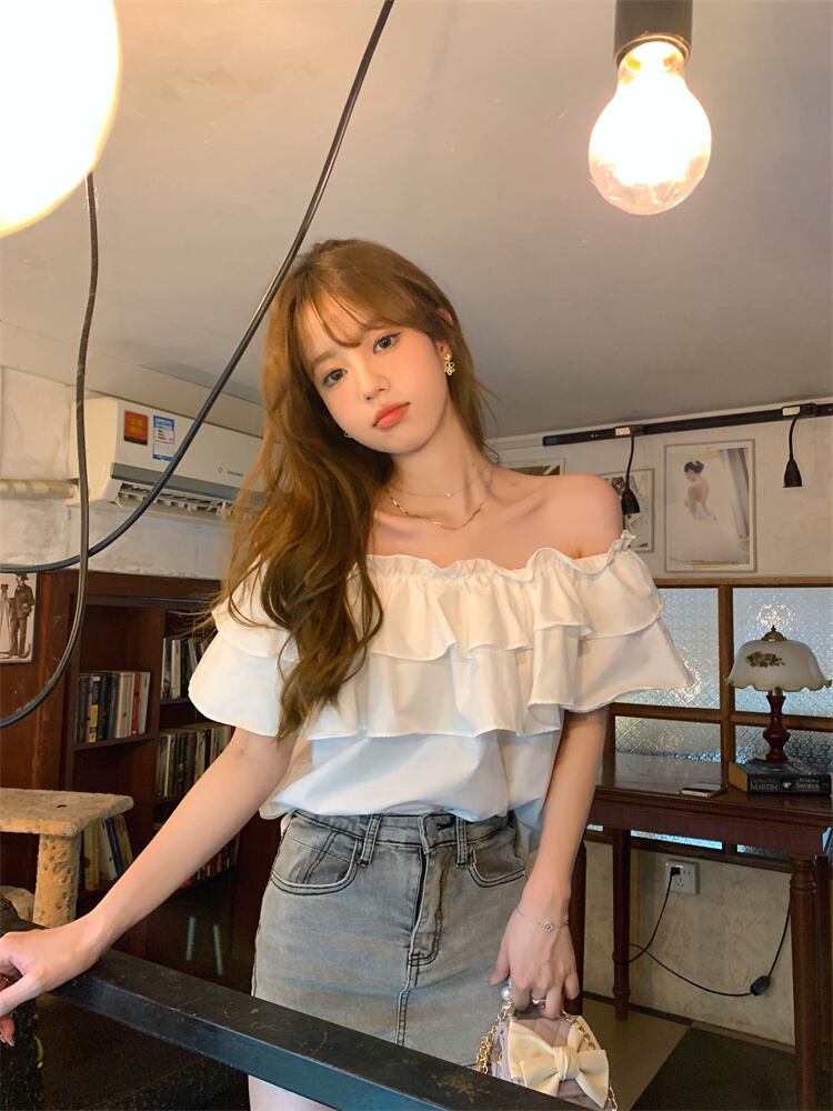 シャツ サマールーズホワイトショートトップス 大人ガーリー スウィート キュート カジュアル 夏物 s576197425840637