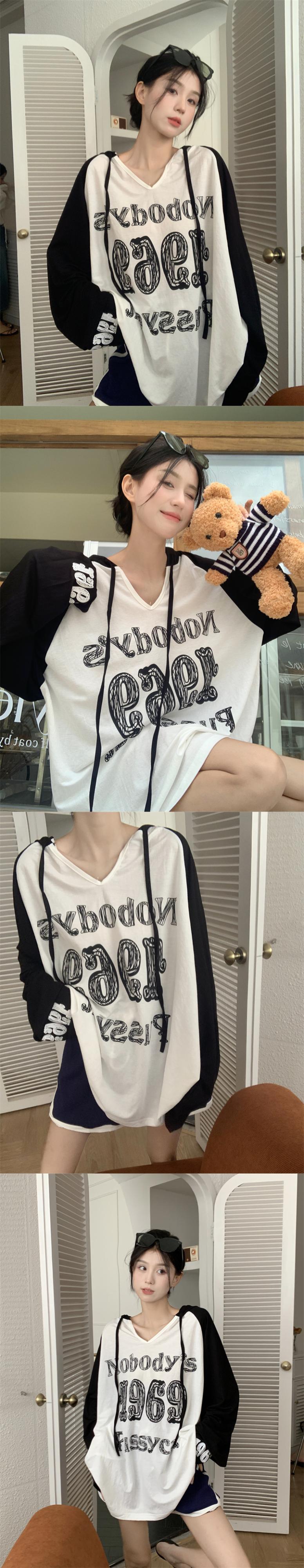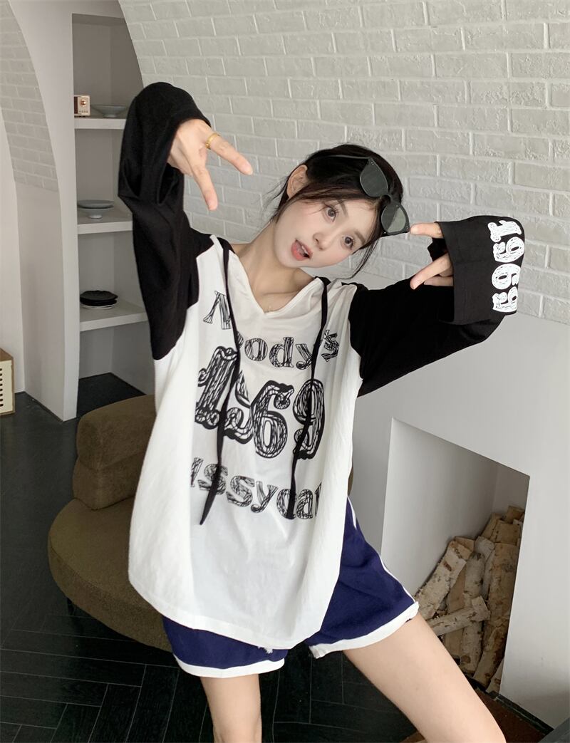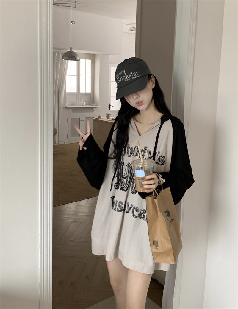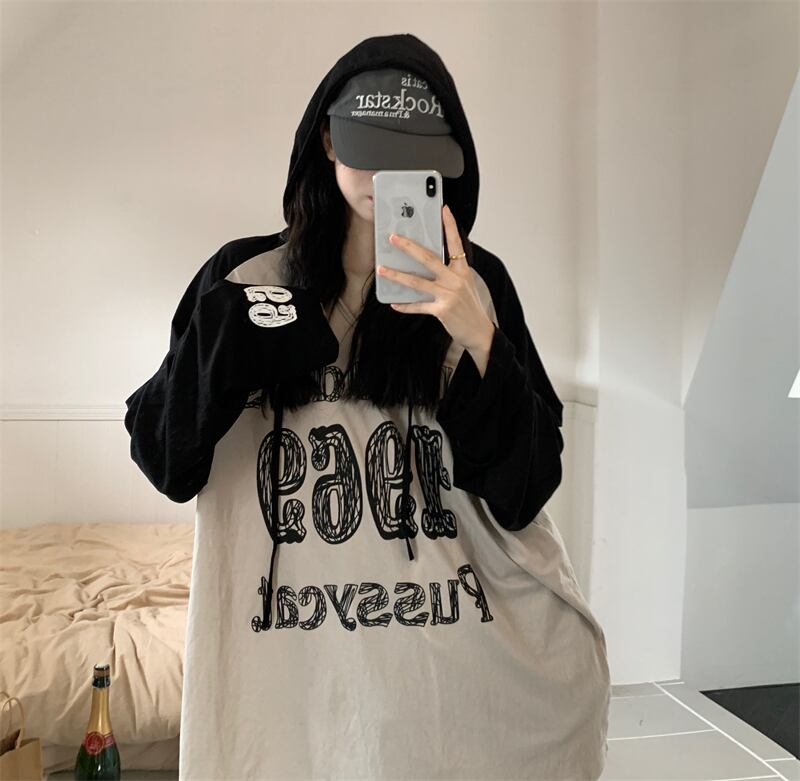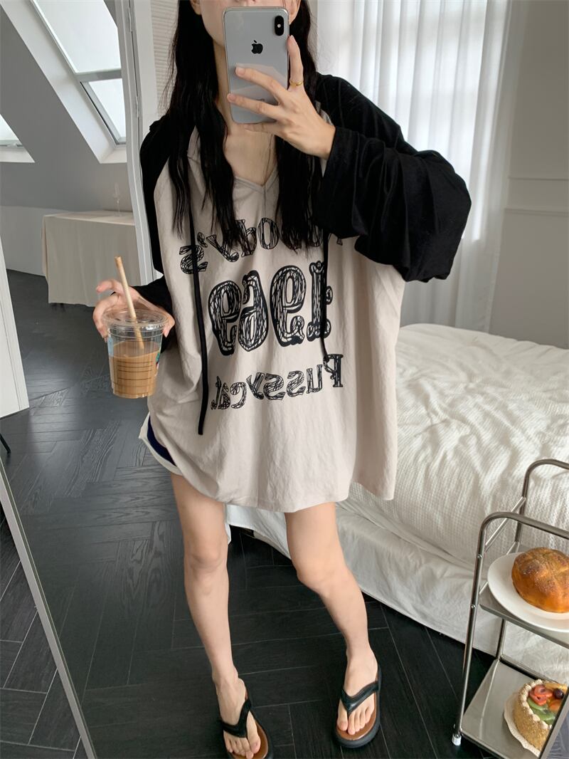 フードTシャツ サマー薄手ルーズカジュアルトップス ロング 夏物 s576190000347513