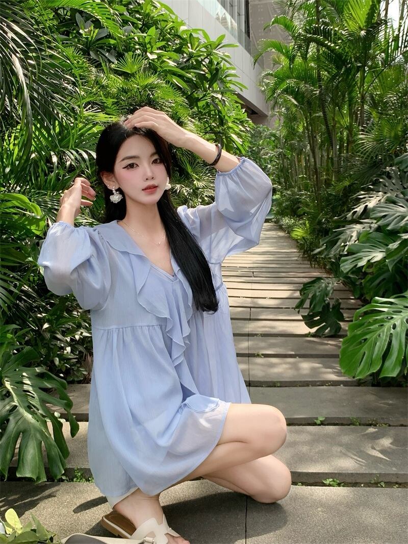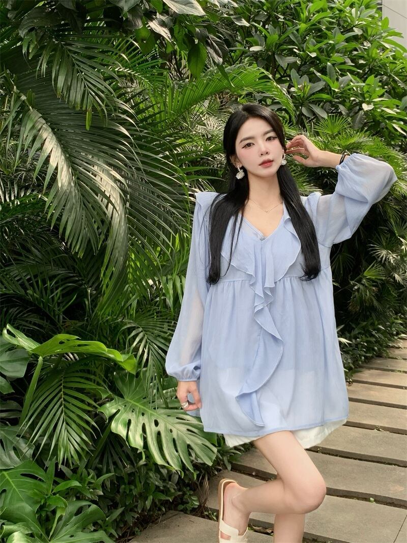 シャツ サマートップス 長袖スリーブシフォン ロング 大人ガーリー スウィート キュート カジュアル 夏物 ピュア s57613795962736