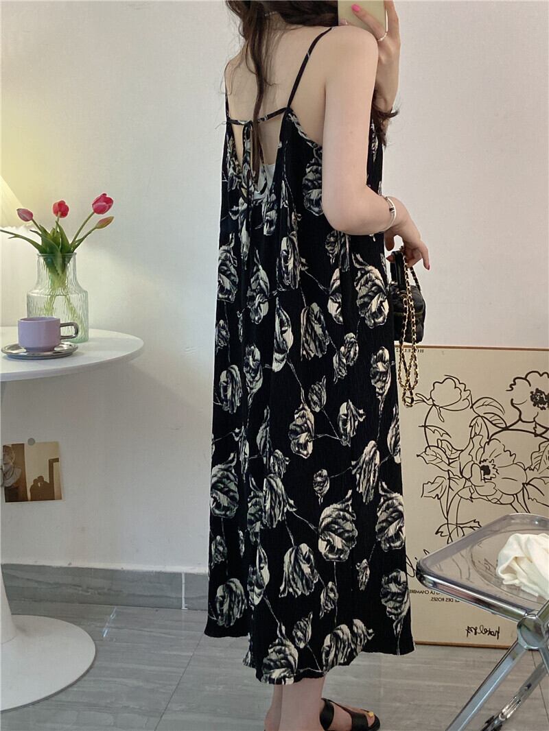 スタンダードプリント柄ドレス サマースカート 薄手ルーズロング レトロ 夏物 s576163006705636