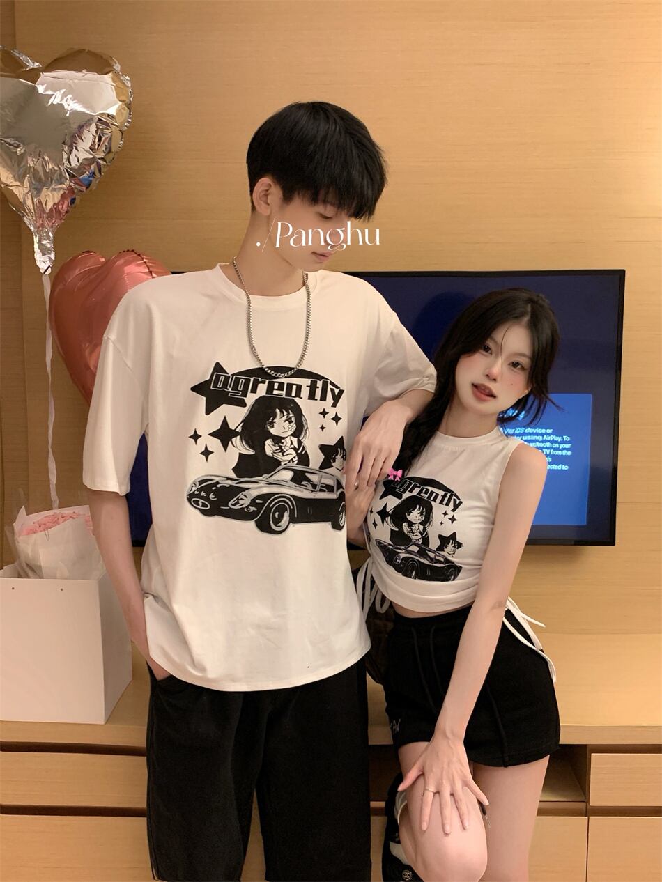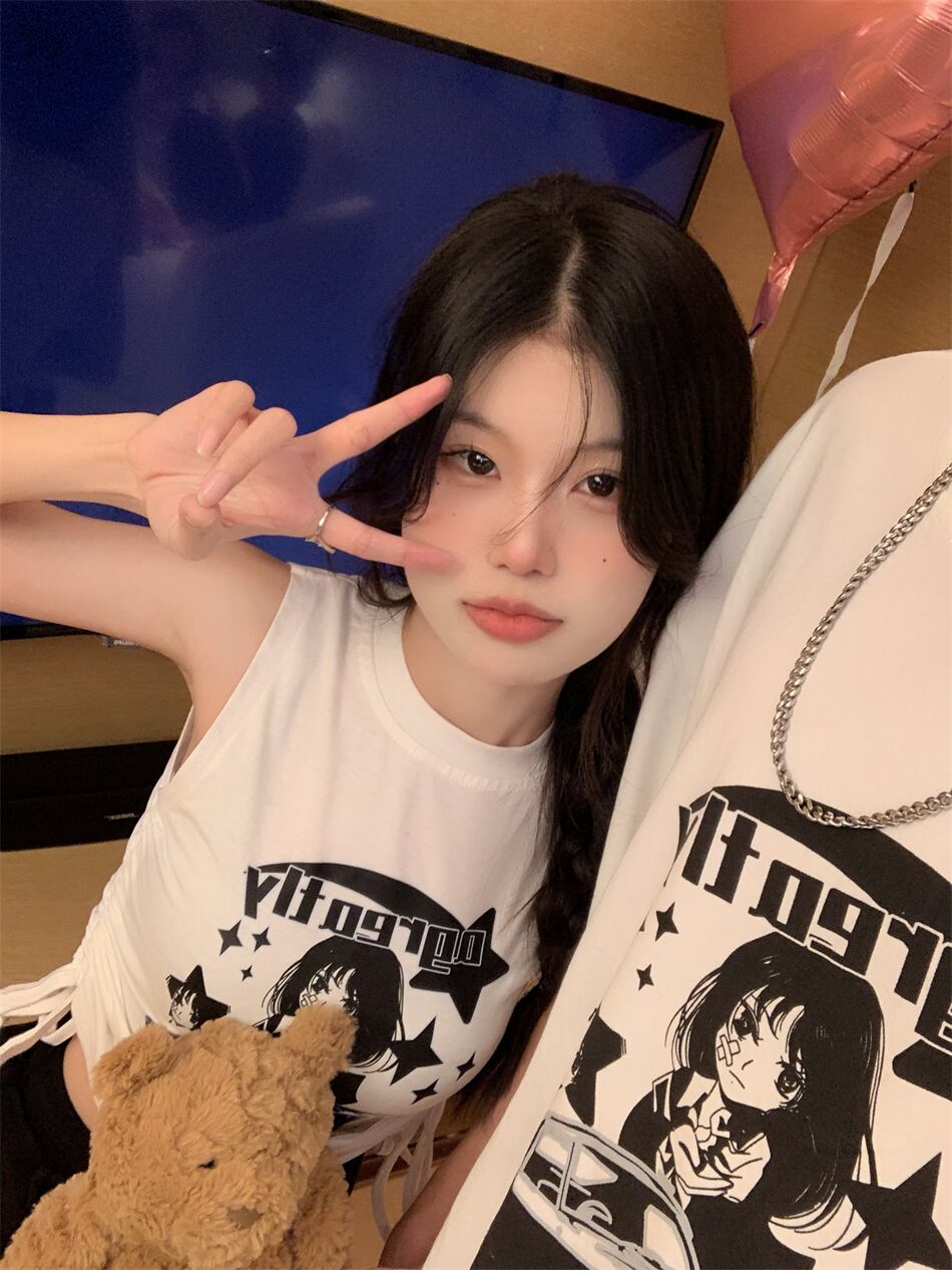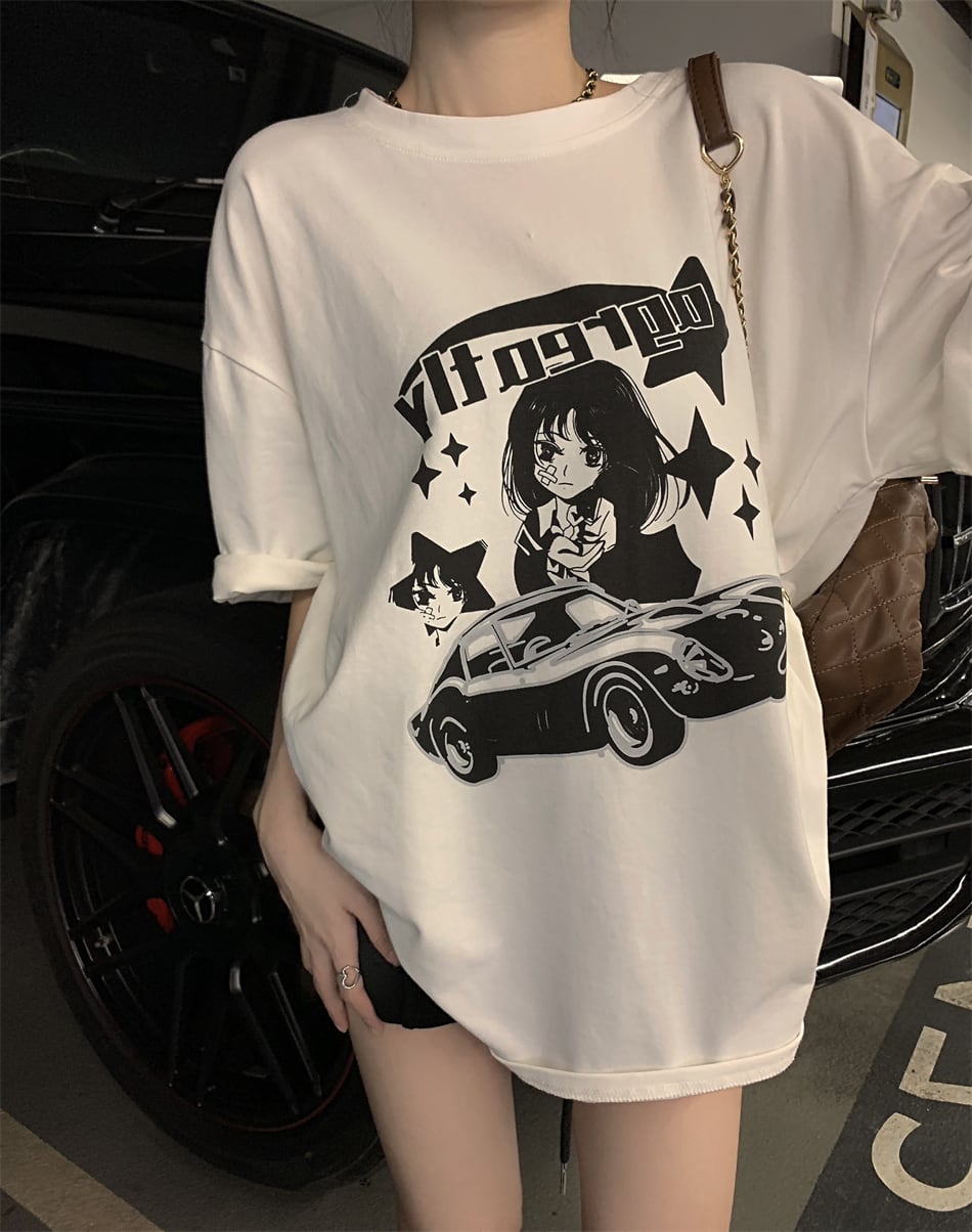 プリント柄ホワイトTシャツ サマールーズ薄手トップス 夏物 s576163618859108