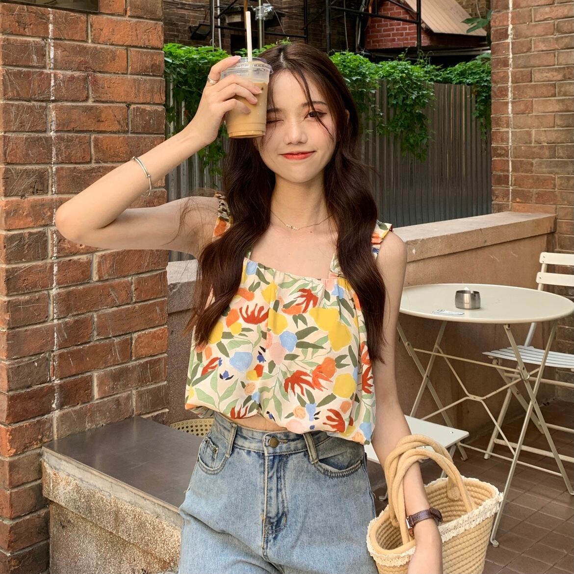 フローラルサマーノースリーブショートトップス 大人ガーリー スウィート キュート カジュアル 夏物 花柄 s576144322355112