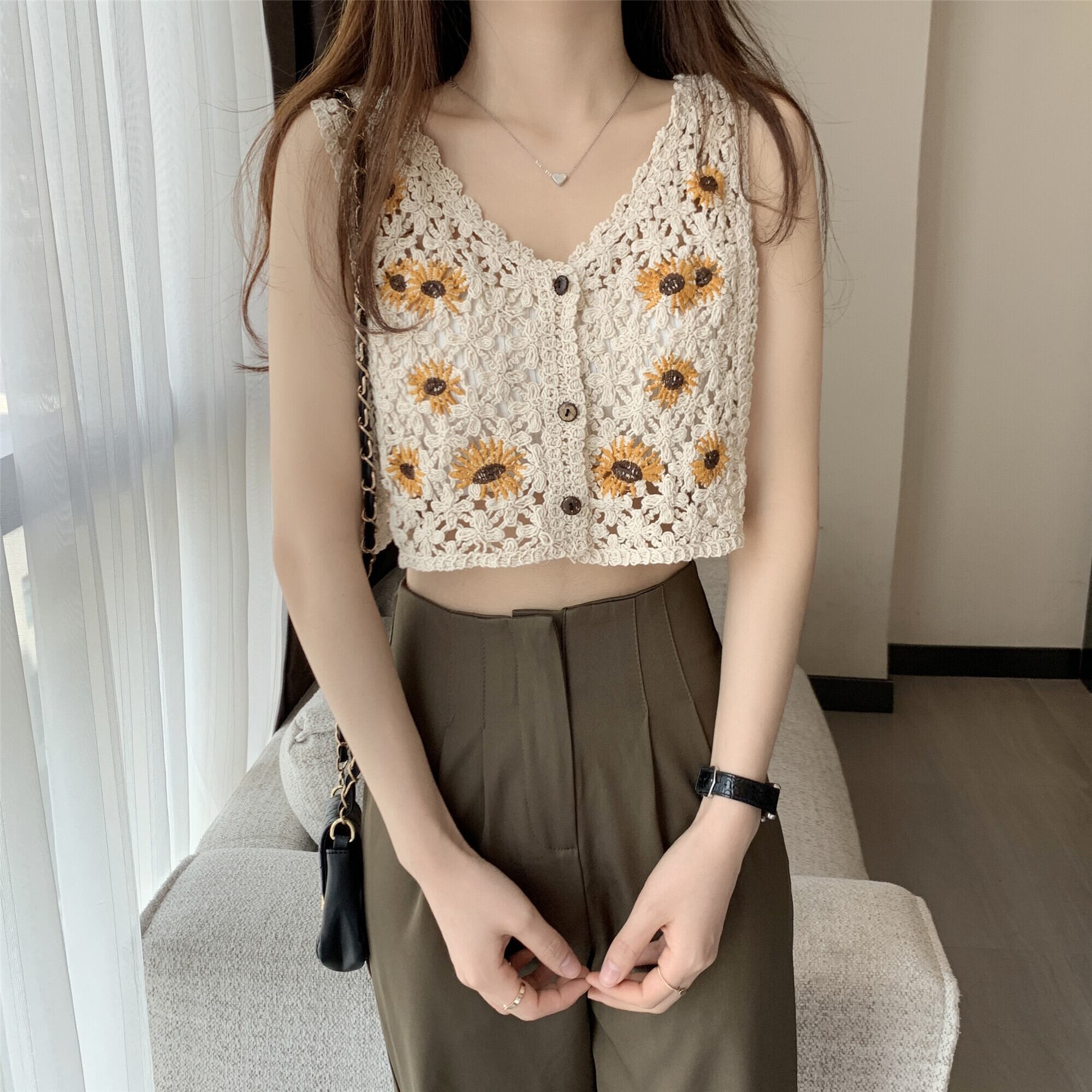 Vネックサマースタンダードニットトップス カーディガン レトロ 夏物 s576122446419594