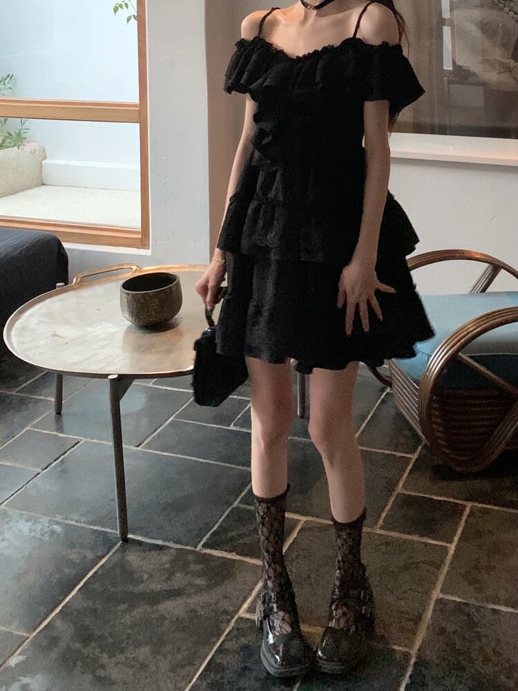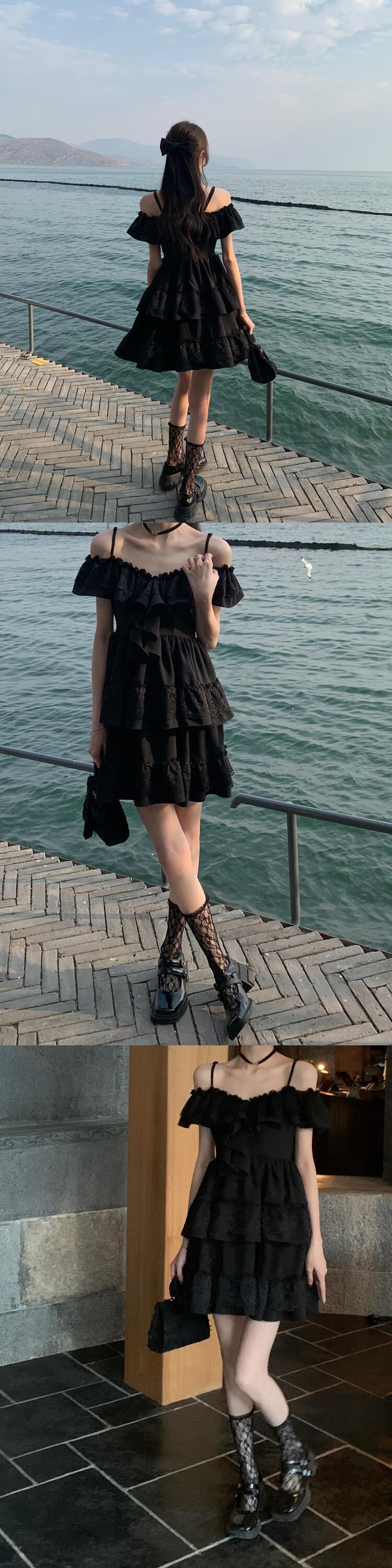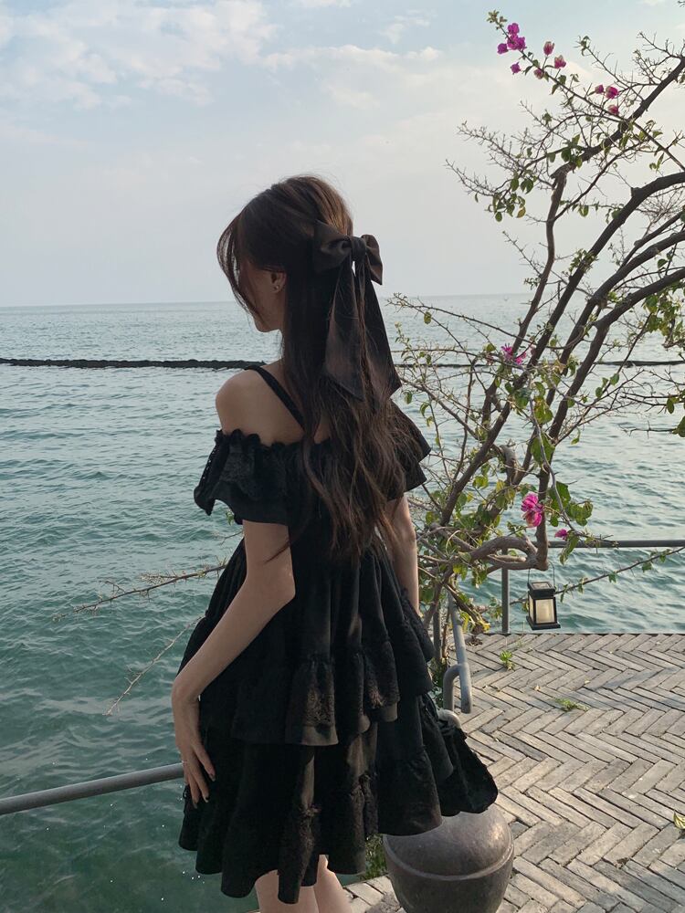 ブラックレースドレス サマースカート 大人ガーリー スウィート キュート カジュアル 夏物 s576144880532470