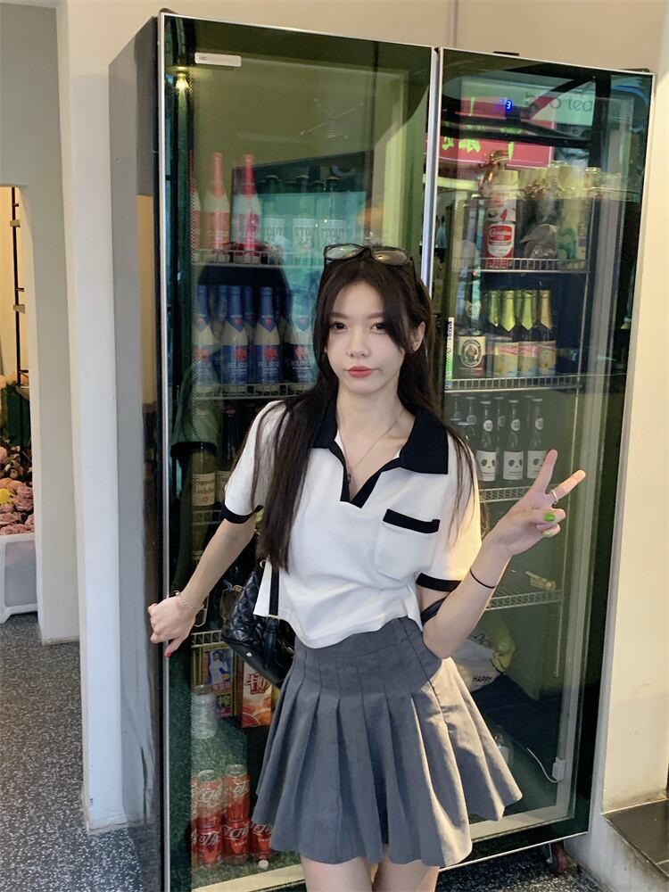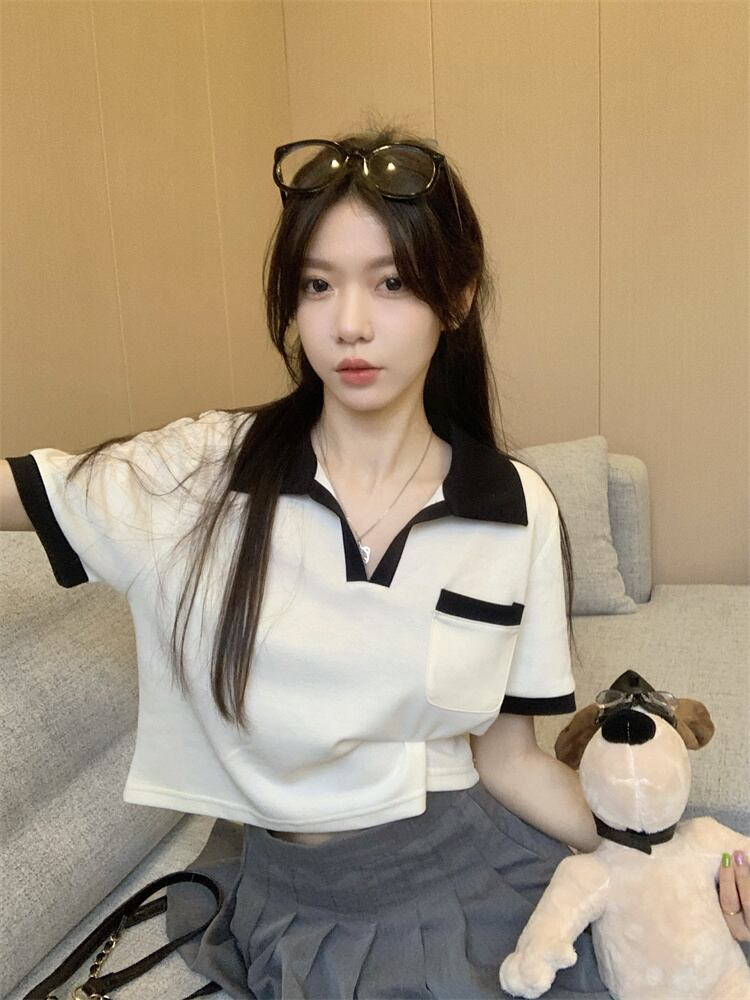 ホワイトカラーショートTシャツ サマートップス 夏物 s576149404868066
