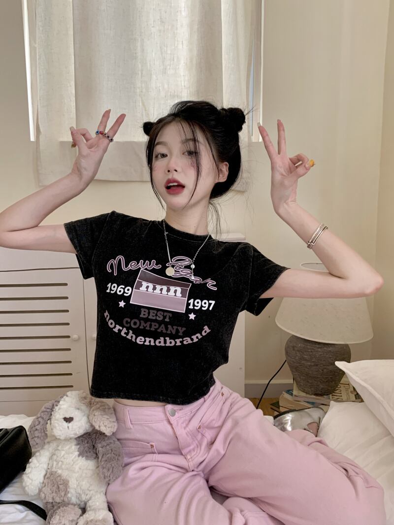 ショートTシャツ サマーレッドスタイルスリムトップス 夏物 s576154395164240