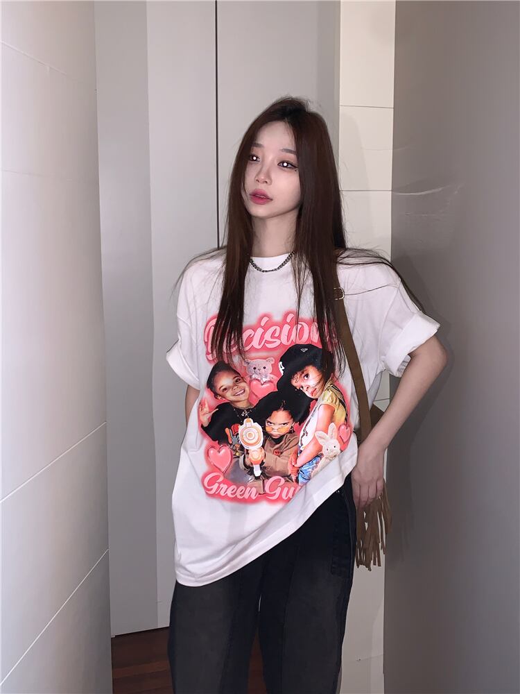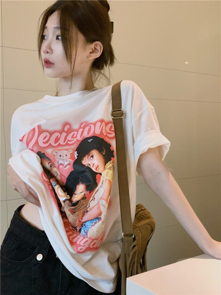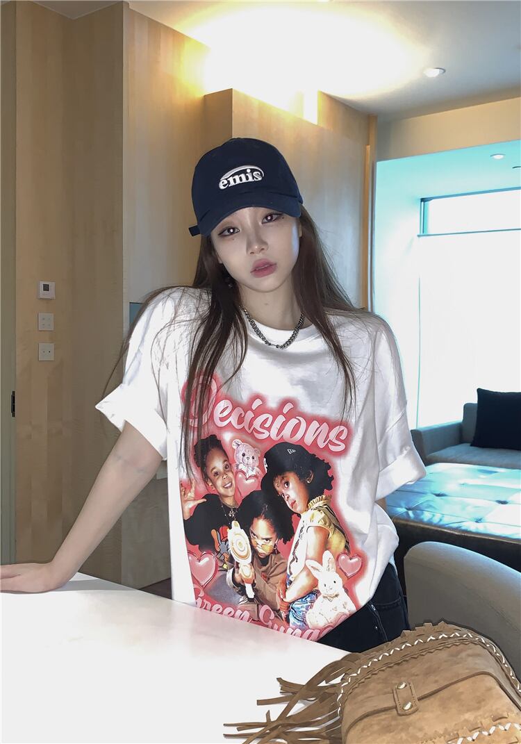 スタンダードブラックTシャツ サマールーズカジュアルトップス レトロ ストリート 夏物 s576122275496737