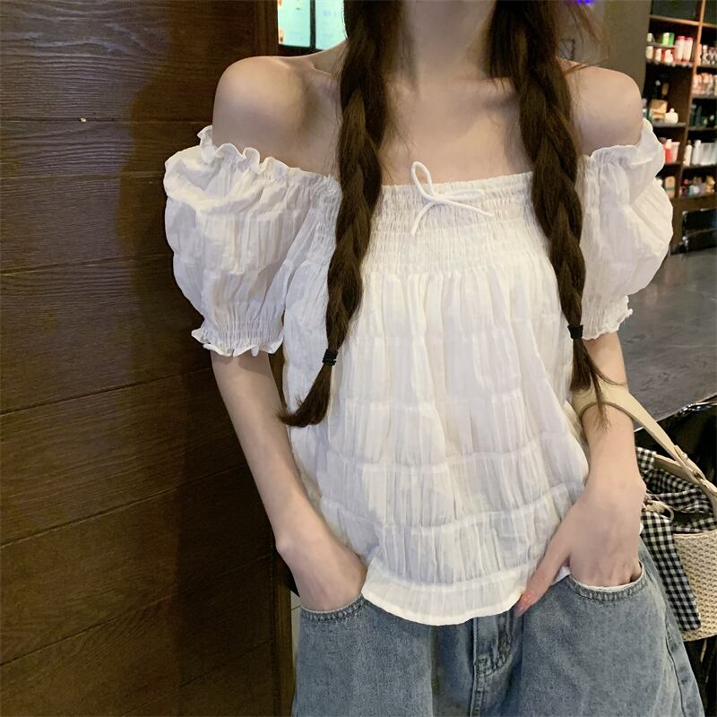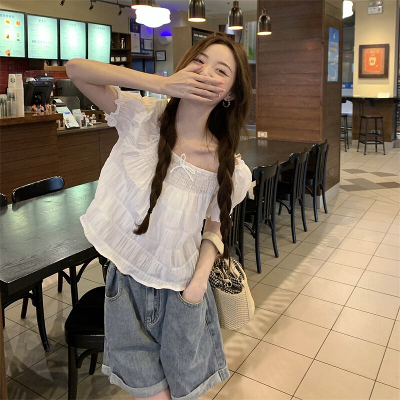 シャツ サマーリボンスリーブホワイトトップス 大人ガーリー スウィート キュート カジュアル 夏物 s576199101218933