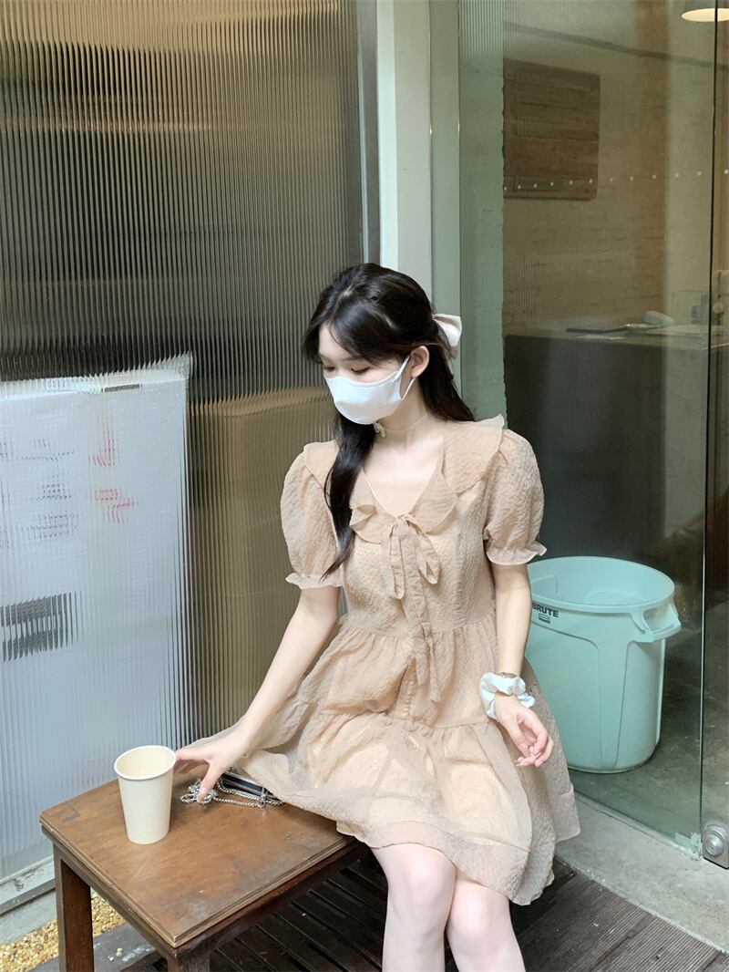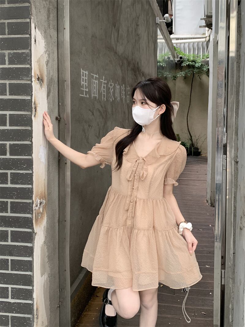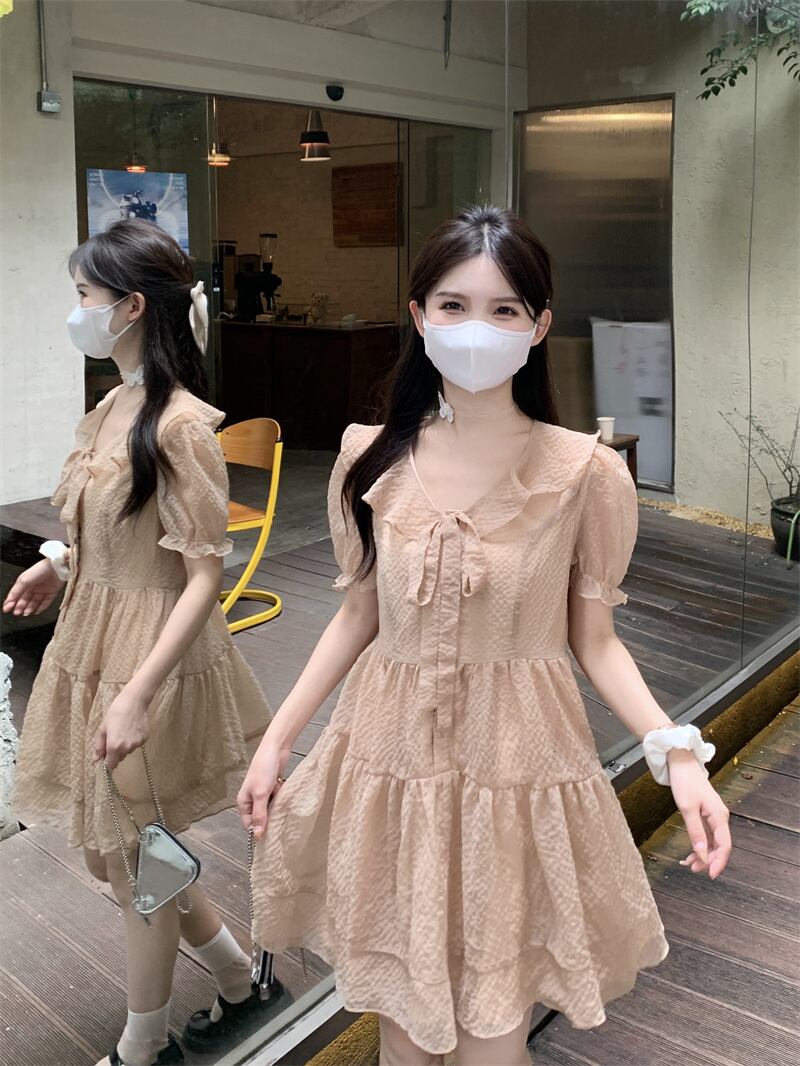 スリーブVネックドレス サマースカート ショート 大人ガーリー スウィート キュート カジュアル 夏物 パニエ ペチコート ピュア s576126214044957