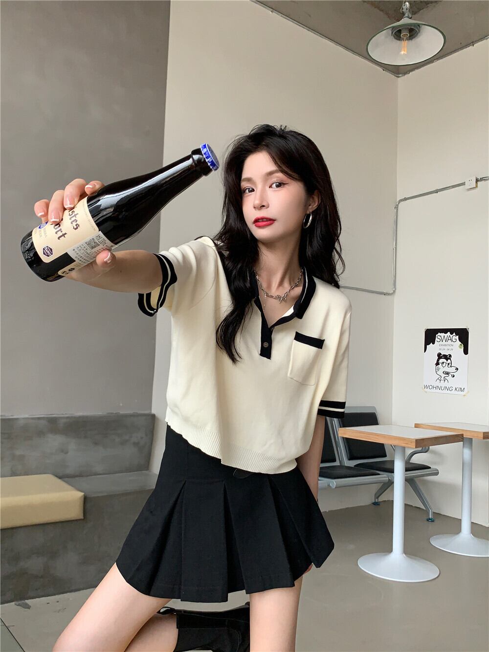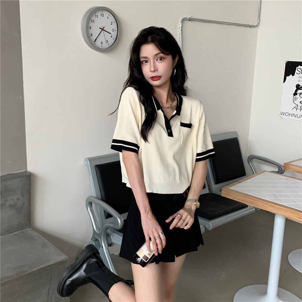 ショートニットTシャツ サマールーズ薄手カラートップス 夏物 s576192953574630
