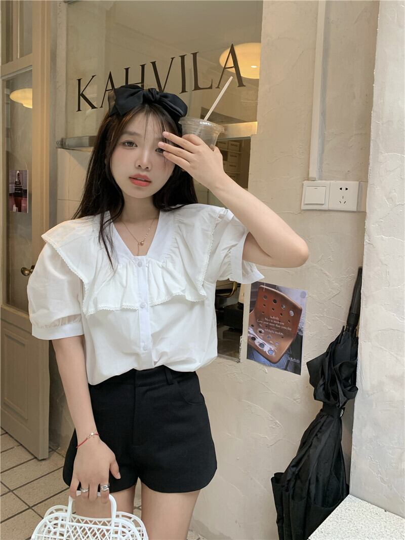 ホワイトスリーブシャツ サマースタイルカラートップス 夏物 s576198728893353