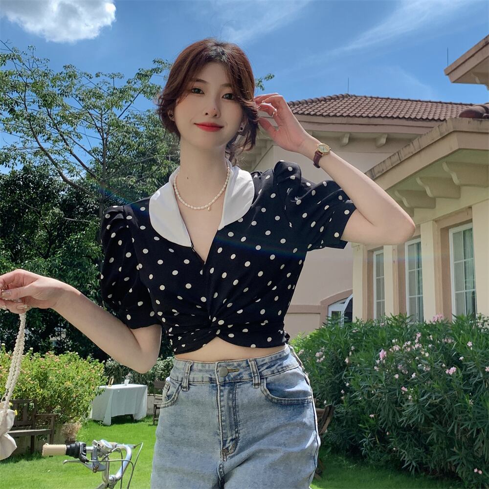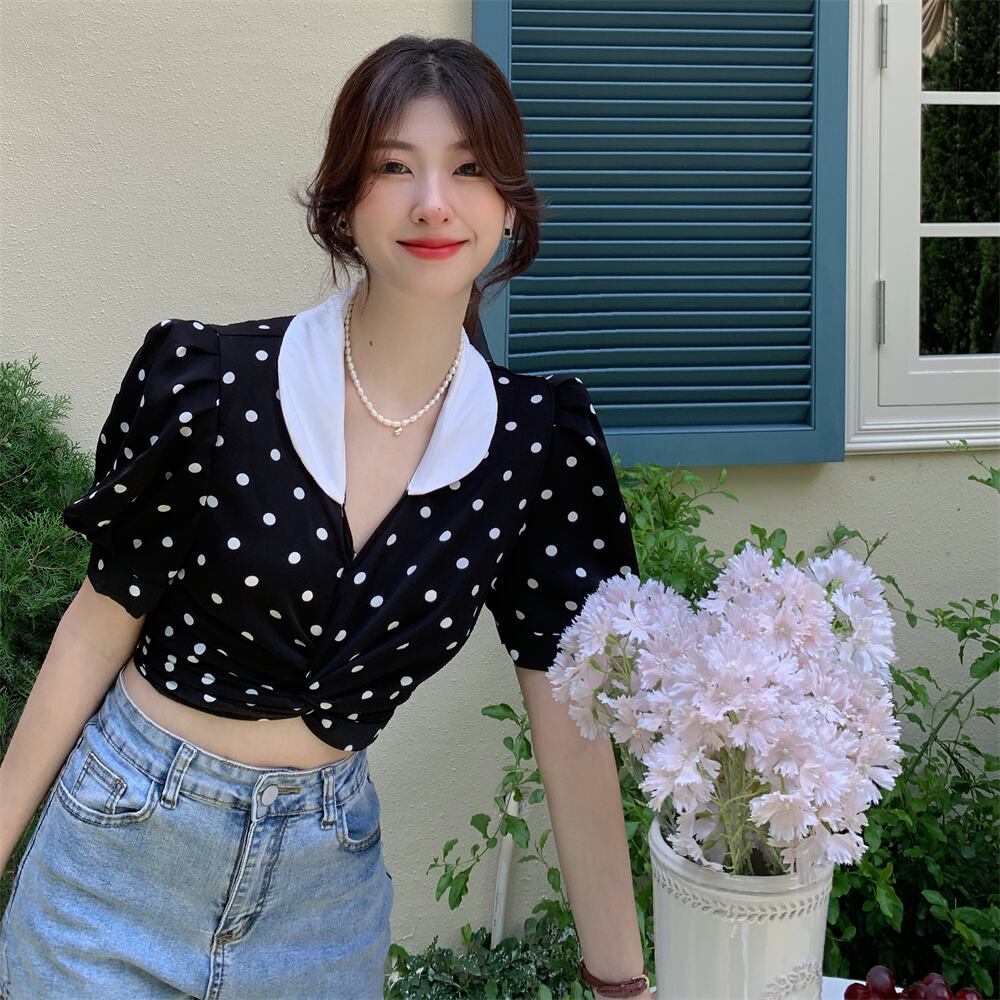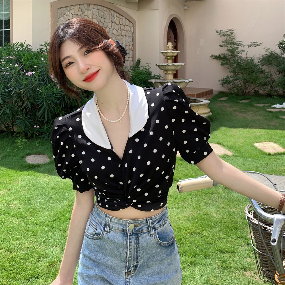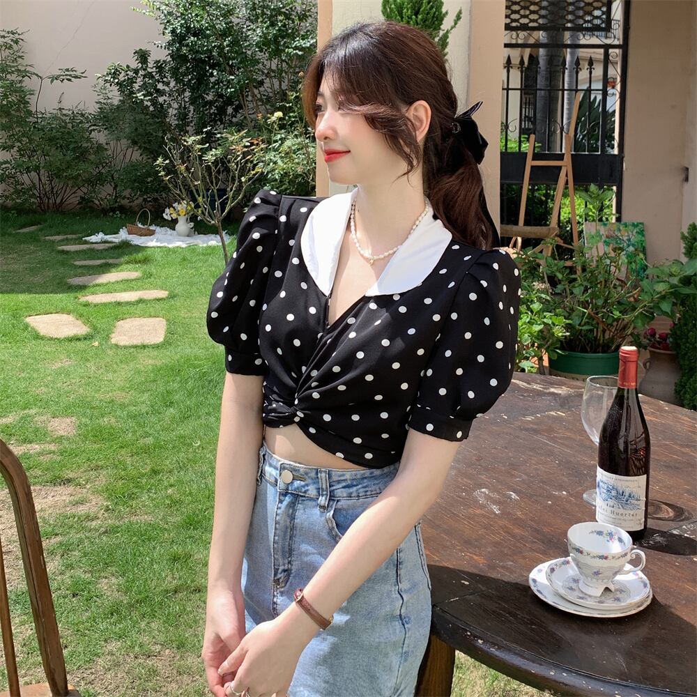 スリーブトップス サマーカラークロスストラップ 水玉シャツ 夏物 s576149922848980