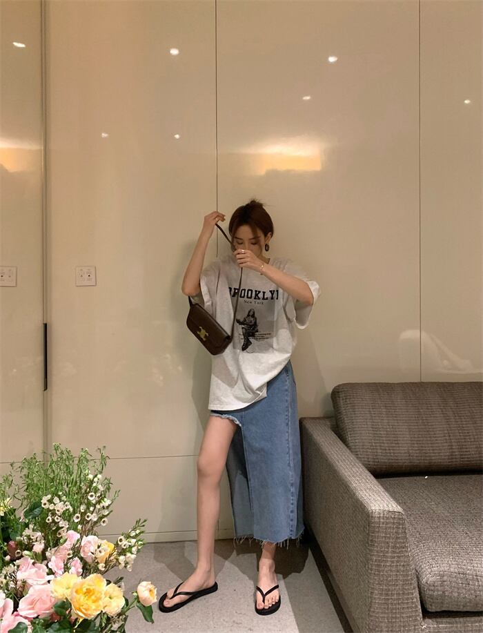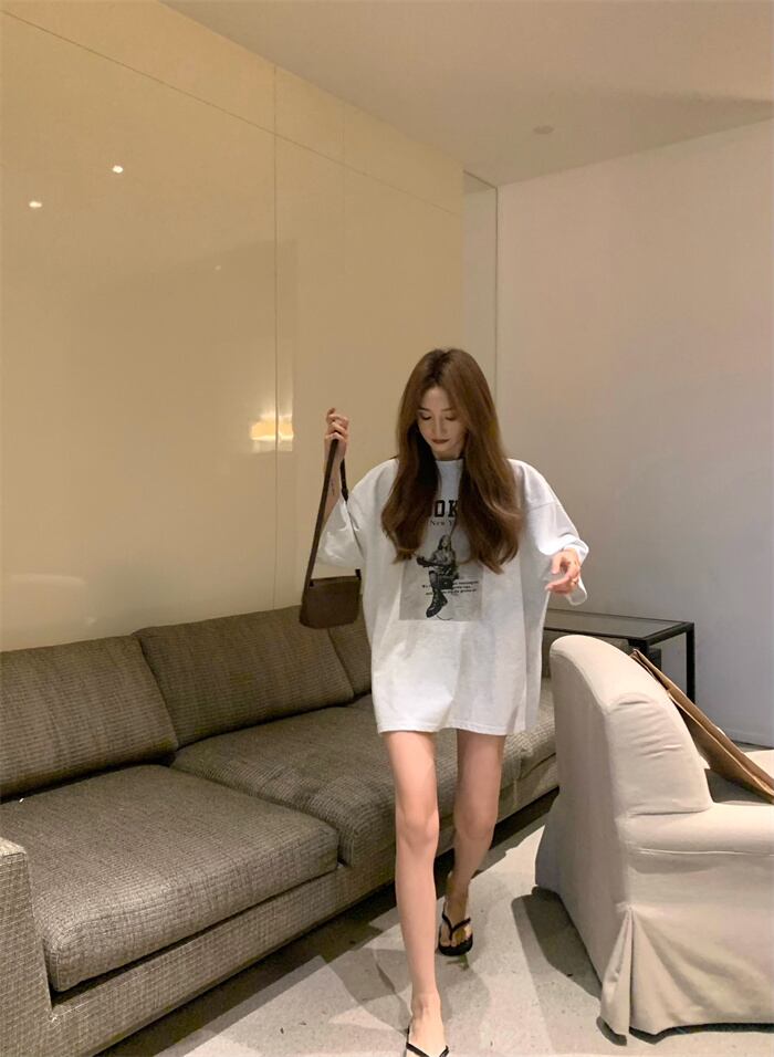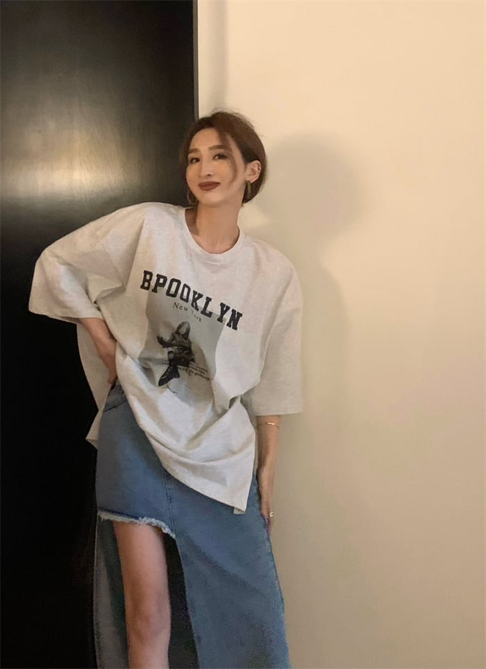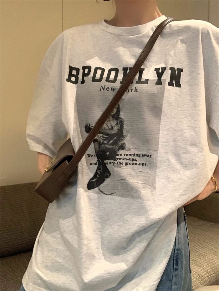 Tシャツ サマースタンダードルーズロングトップス レトロ 夏物 s576196683713343