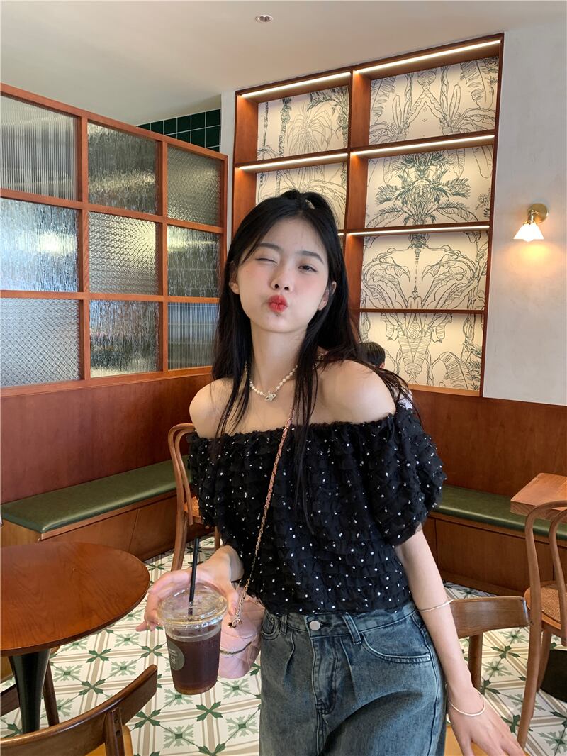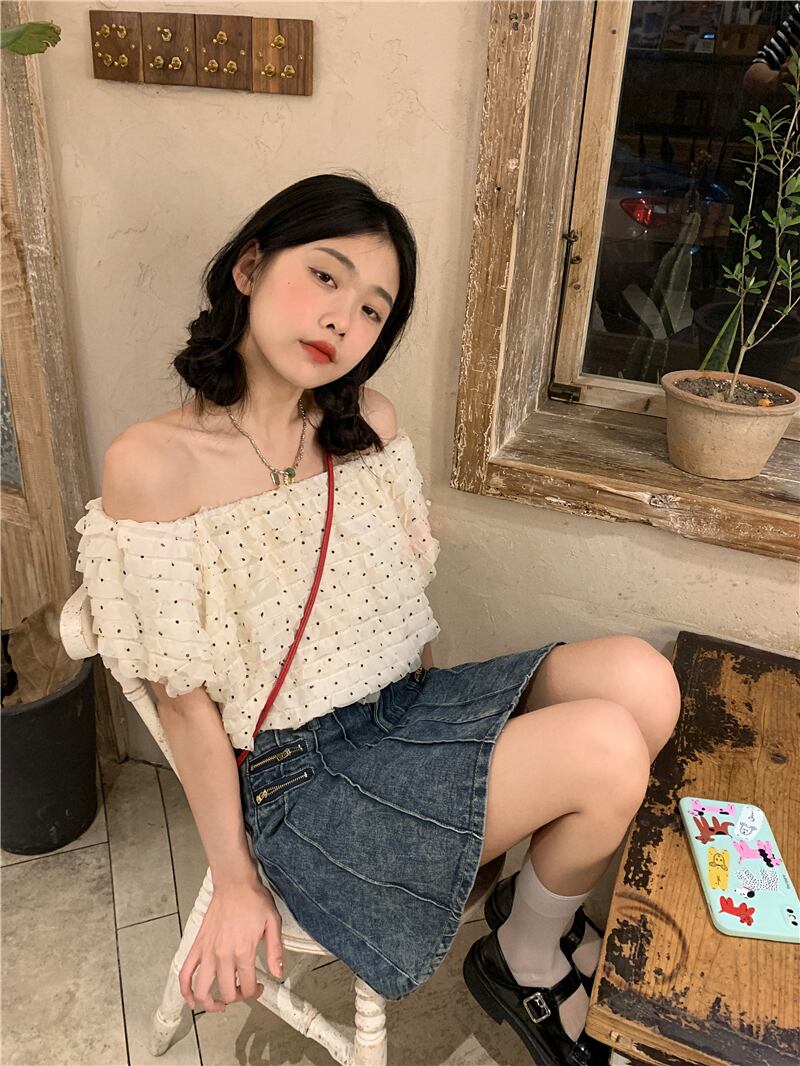 ショートトップス サマー水玉シャツ 大人ガーリー スウィート キュート カジュアル 夏物 s576139746854545