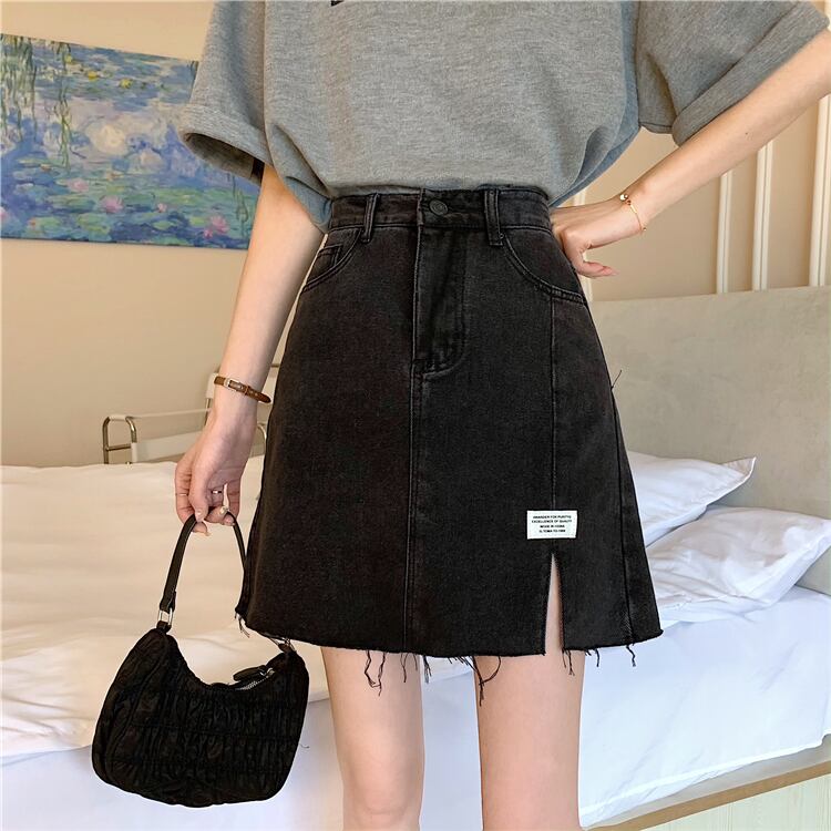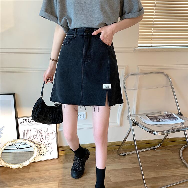 ブラックスカート サマーAラインハイウェストウェストスリットショート 夏物 s576140656312201