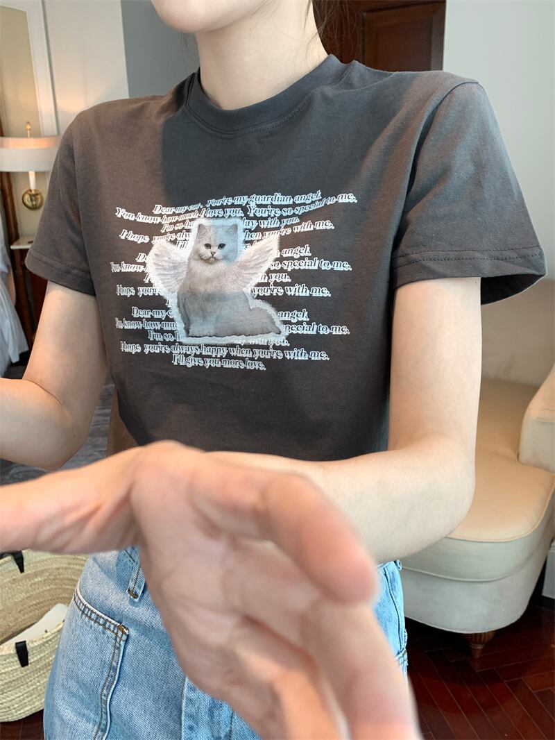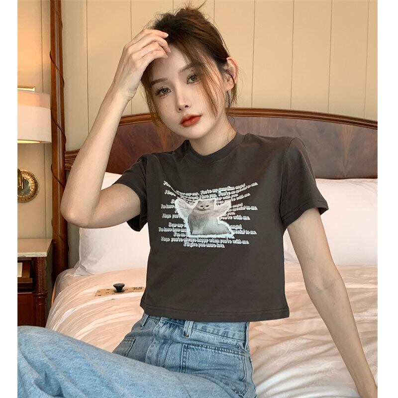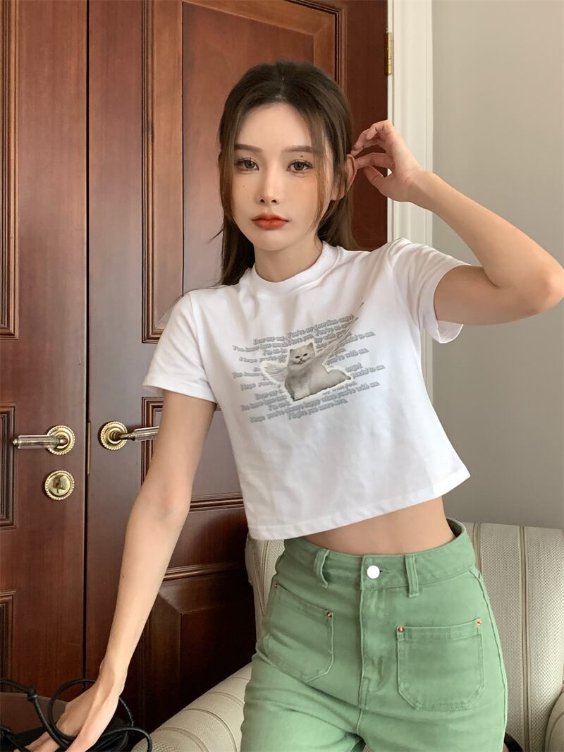 プリント柄ショートTシャツ サマースリムスタイルトップス 夏物 s576152756226832