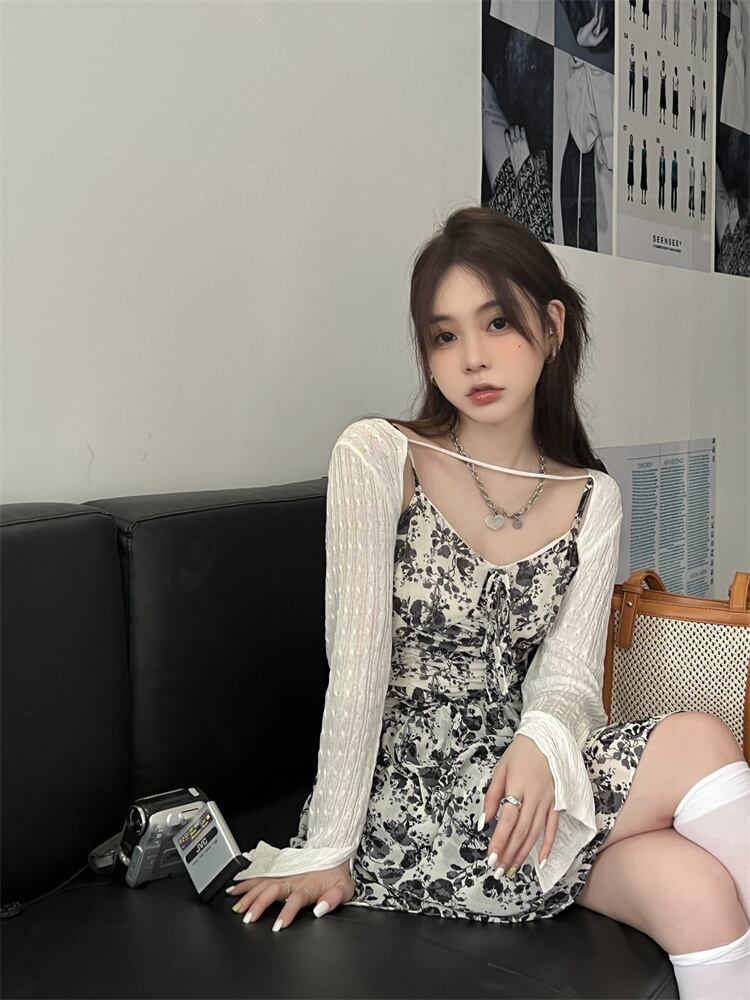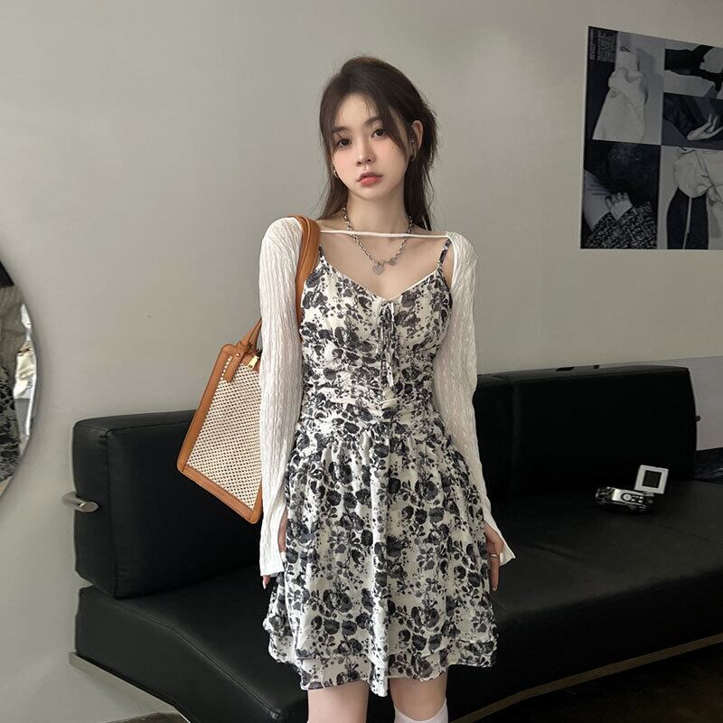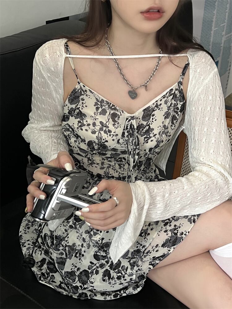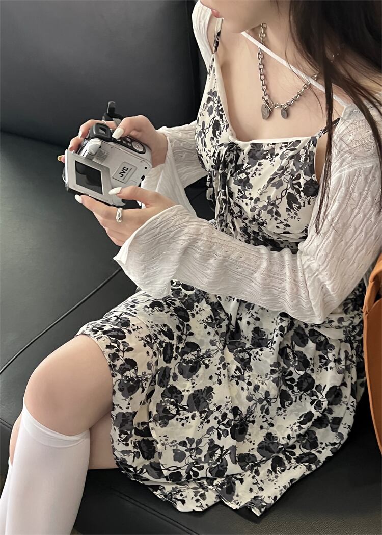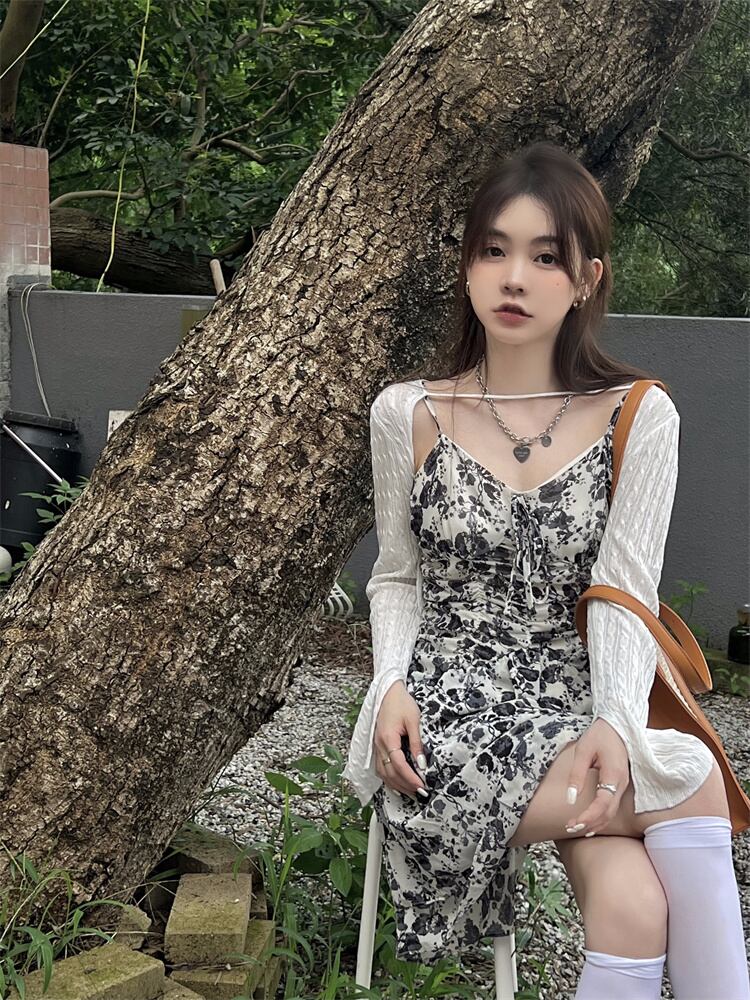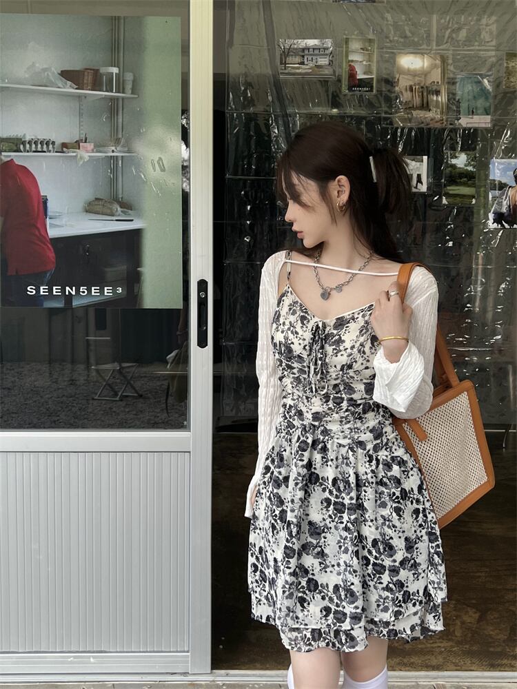 フローラルVネックドレス スタイルスリムプリント柄スカート サマー薄手Aライン 夏物 花柄 ピュア s576165312536777