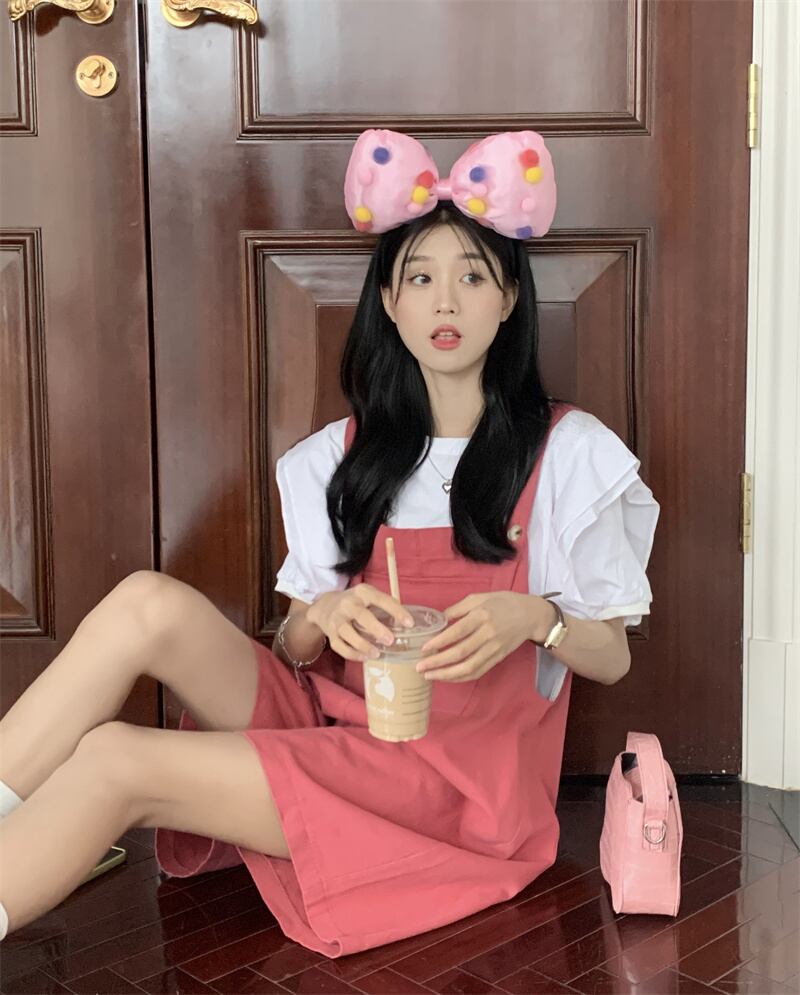 色:ホワイトt-shirt,グリーンoveralls,ピンクoveralls