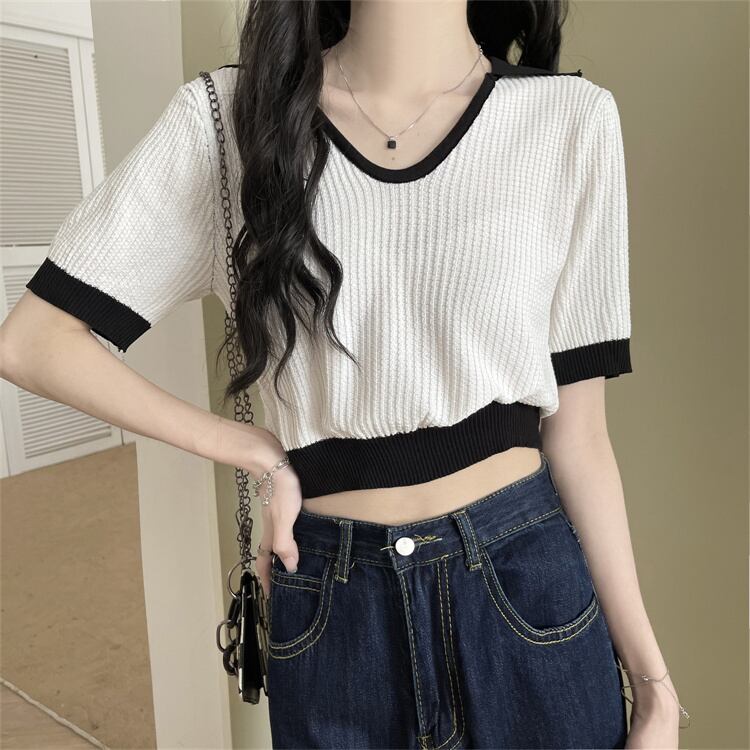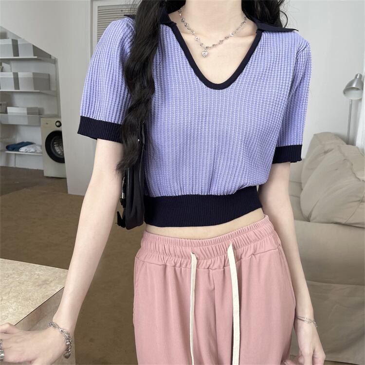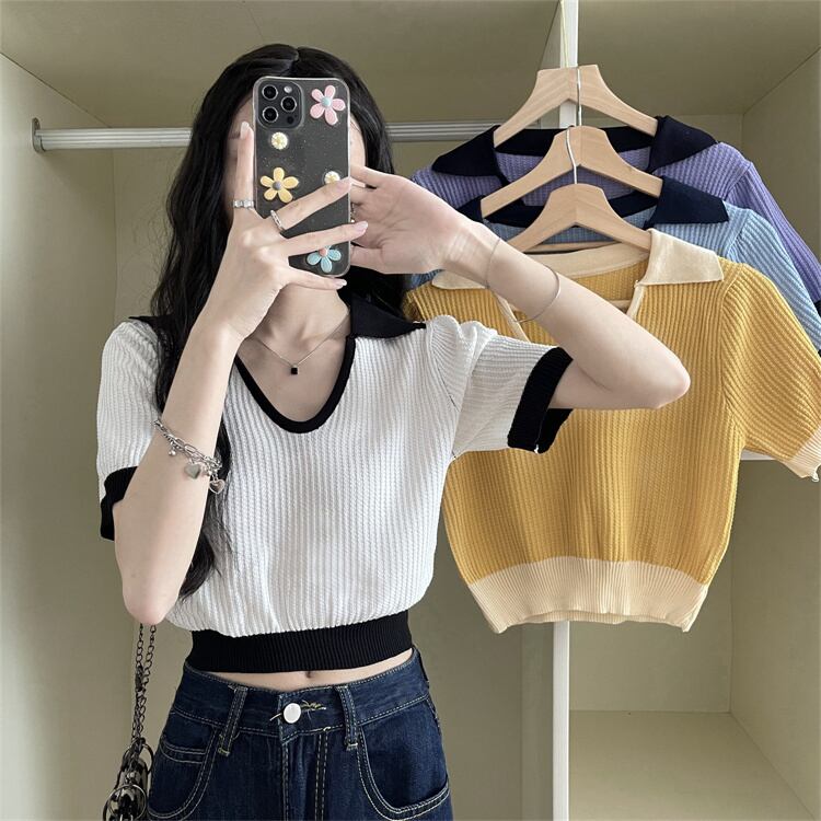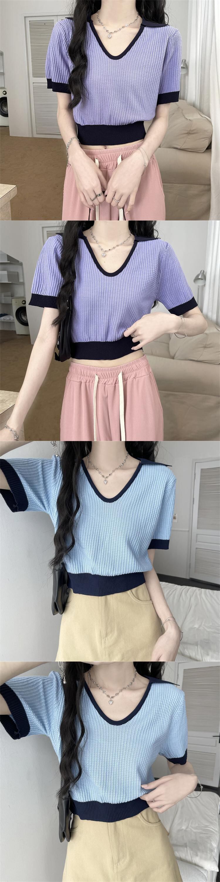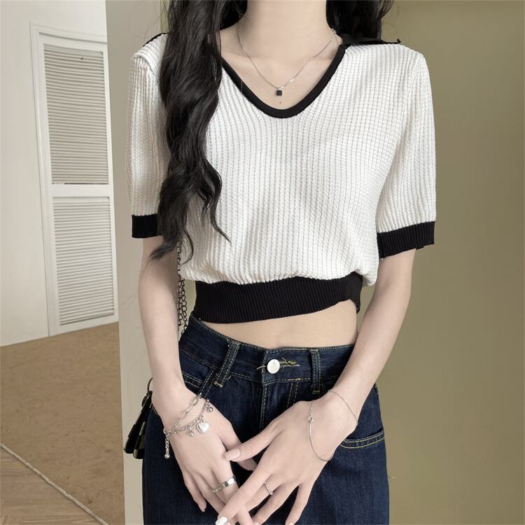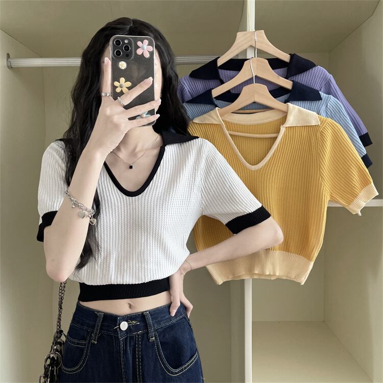 セーター カラーTシャツ サマーVネックトップス 夏物 シルク s576181988899405