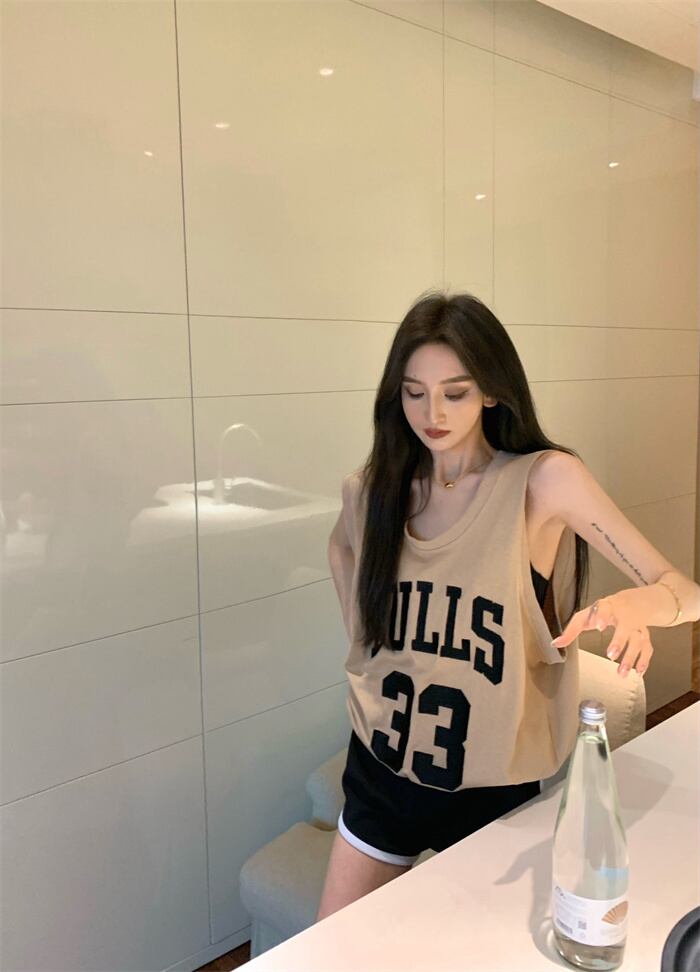 ノースリーブTシャツ サマースタンダードルーズトップス コットン レトロ 夏物 s576191889749034