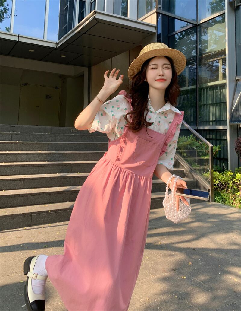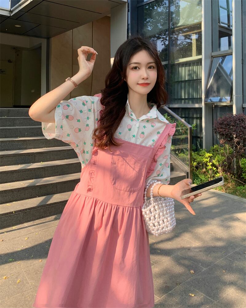 色:ピンクflowershirt,peach/アプリコットshirt,ピンクストラップドレス,イエローストラップドレス