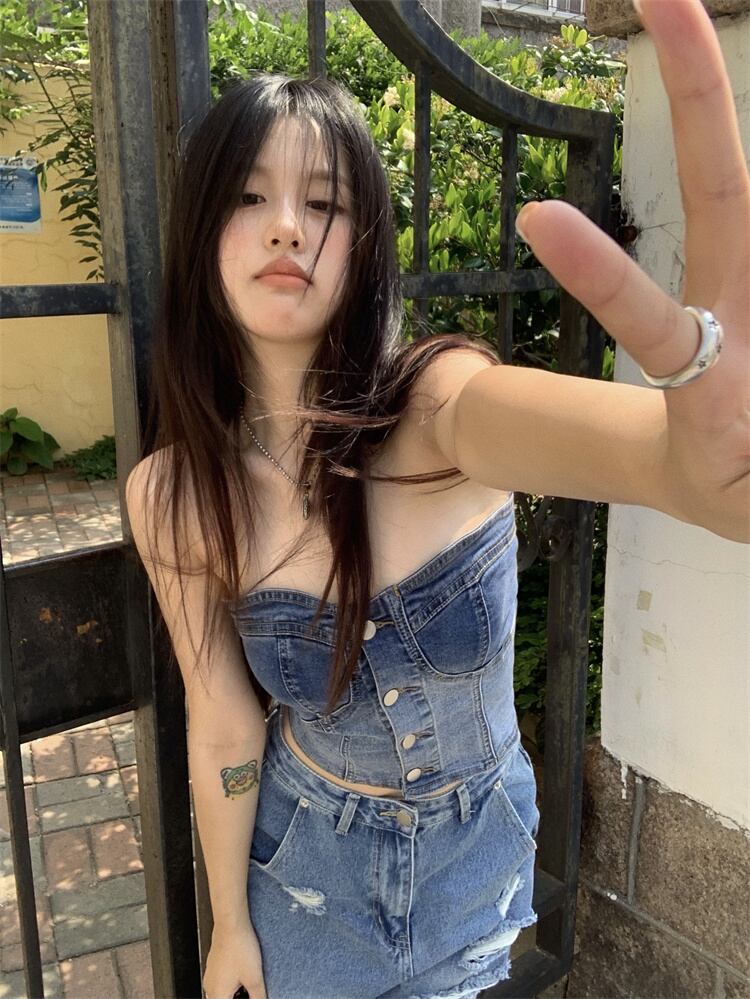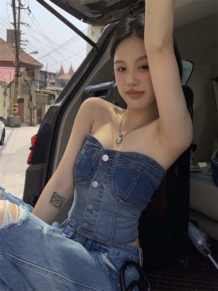 トップス サマーレッドノースリーブショート 夏物 s576126943629529