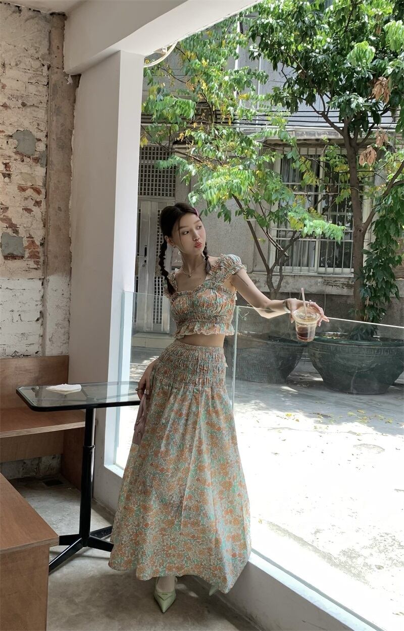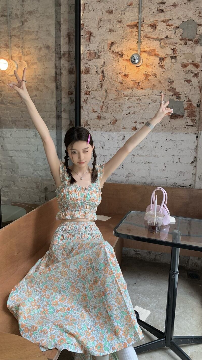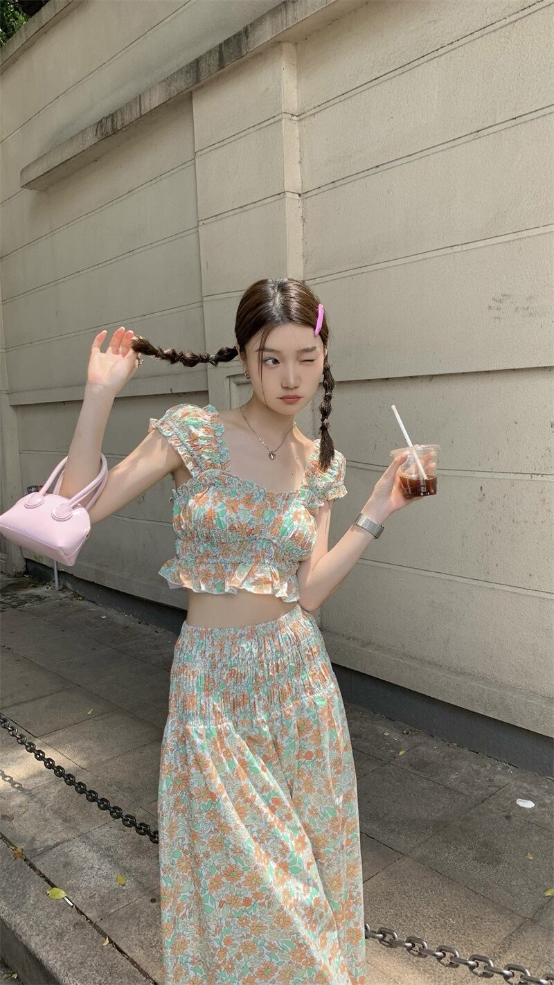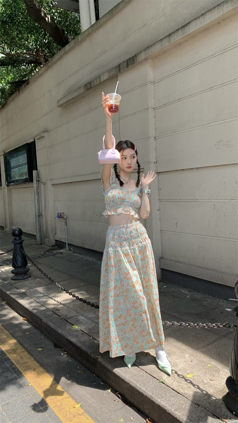 サマーフローラルスカート セット 大人ガーリー スウィート キュート カジュアル 夏物 花柄 s576112250132121