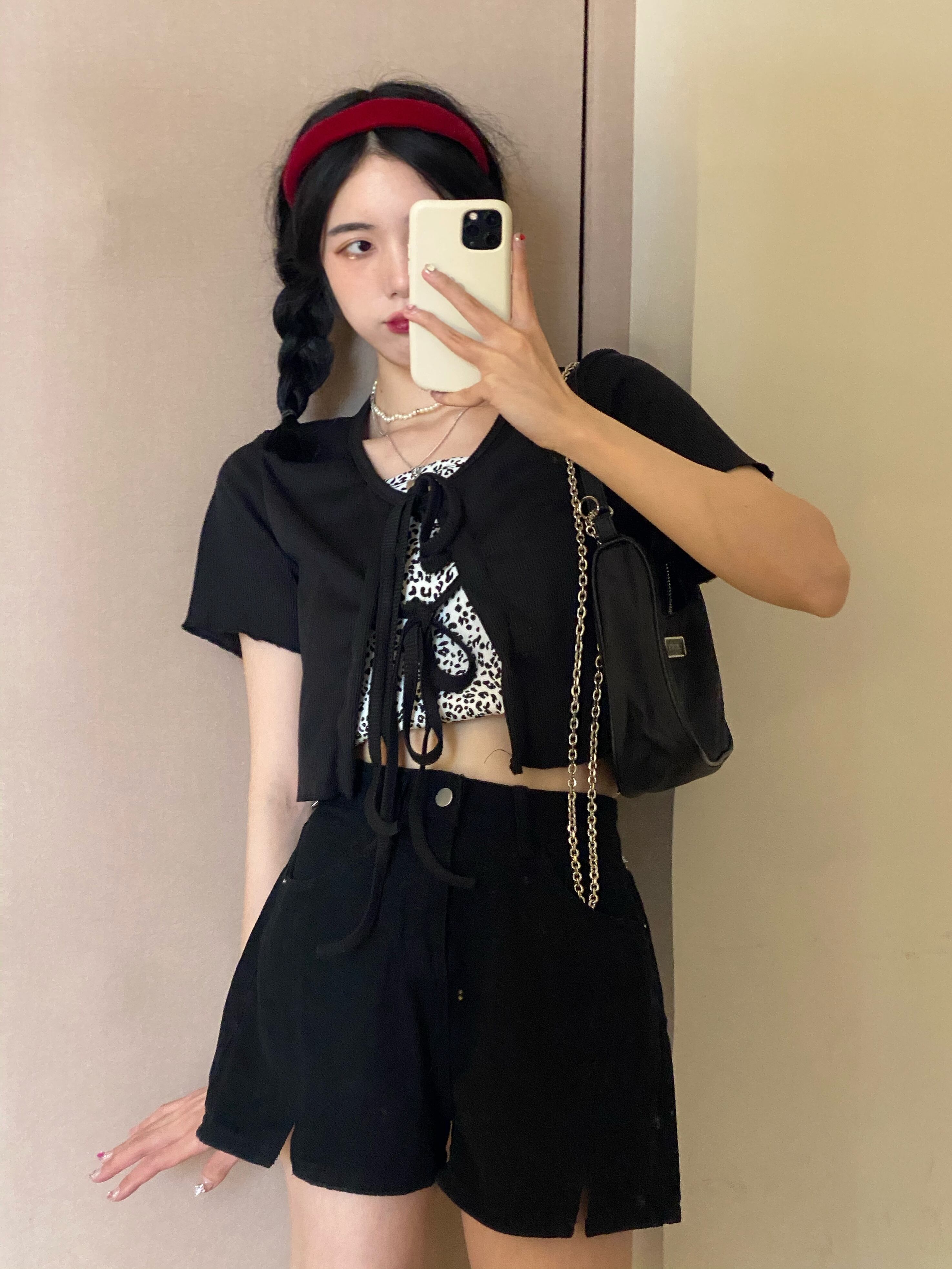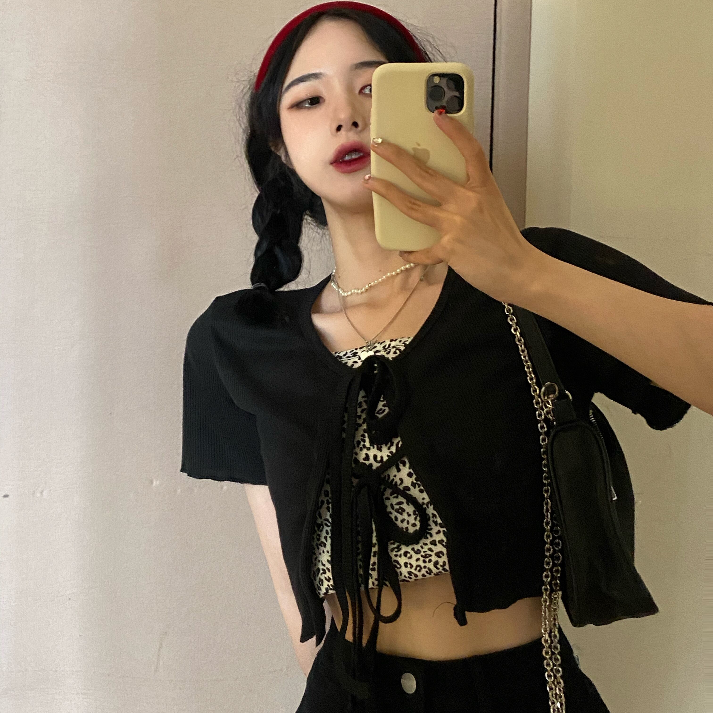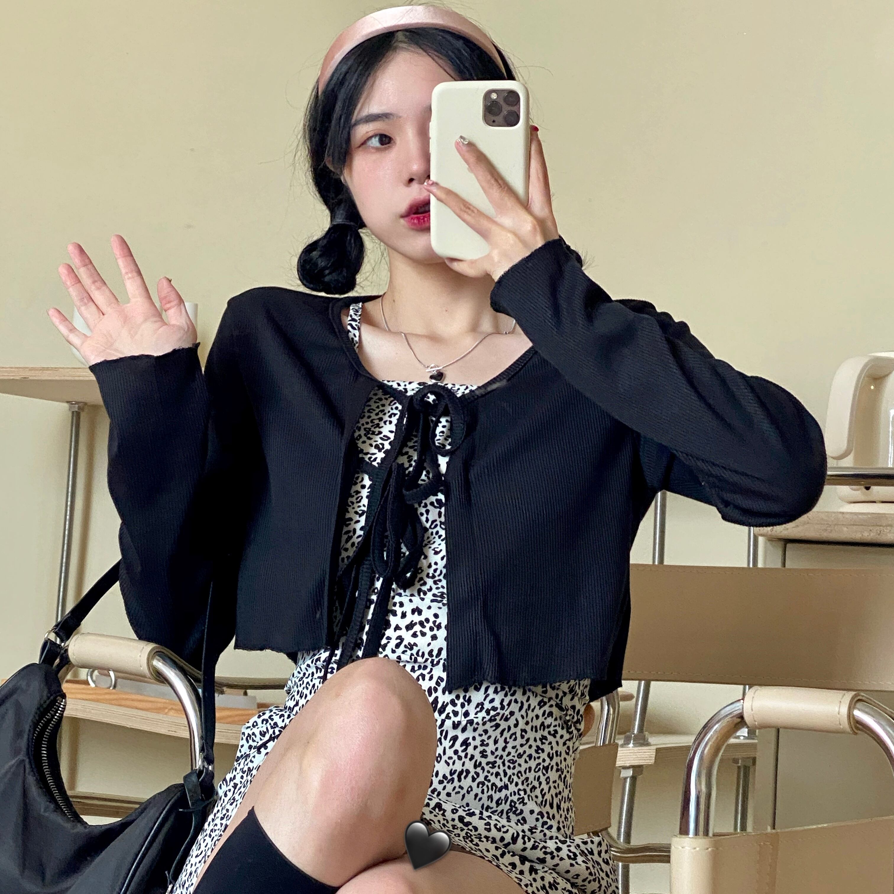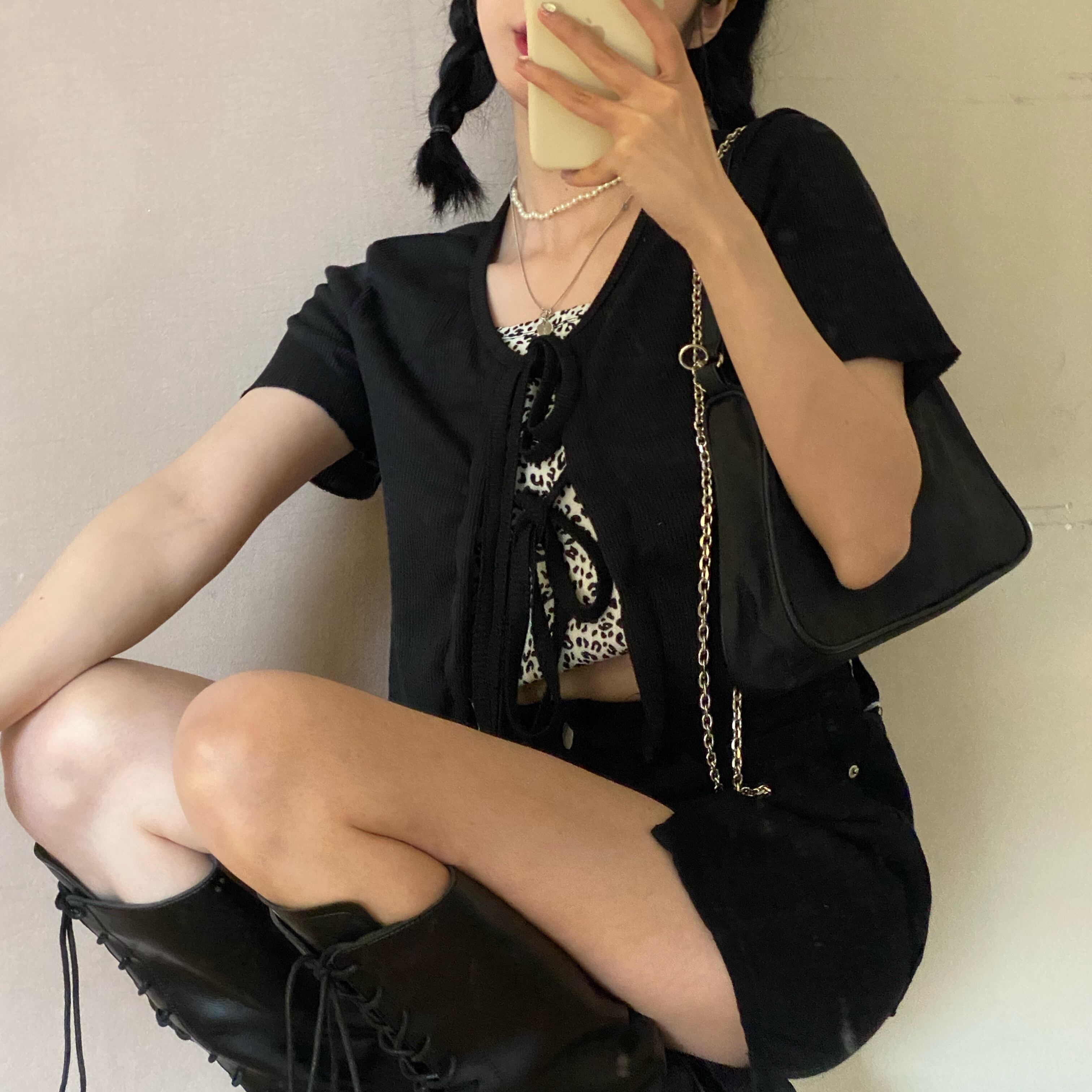 ブラックニットカーディガンサマーショートトップス 大人ガーリー スウィート キュート カジュアル 夏物 s576116131812719