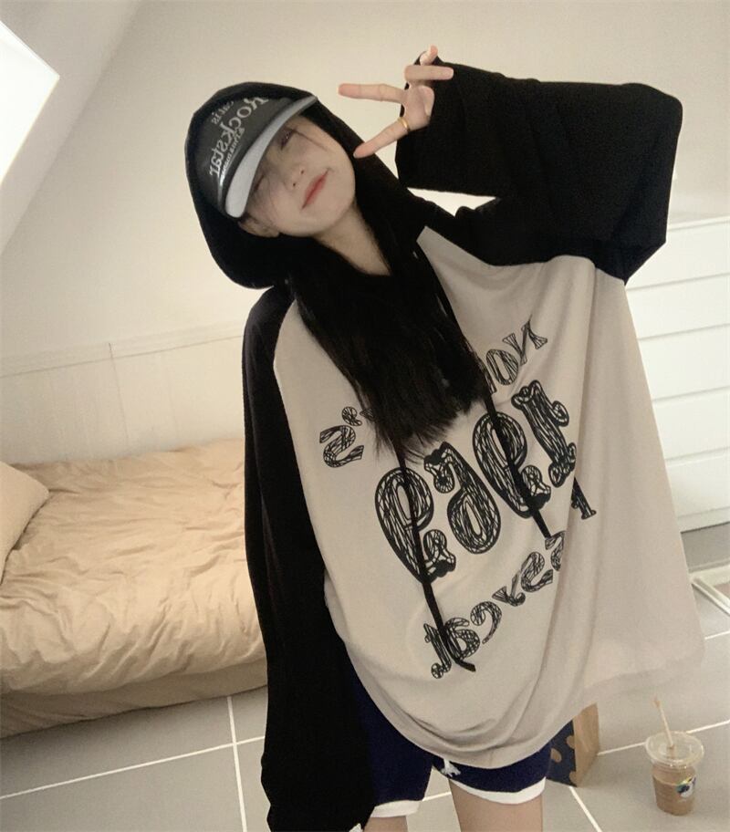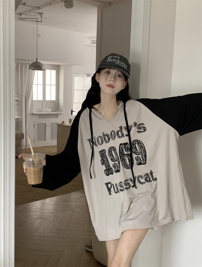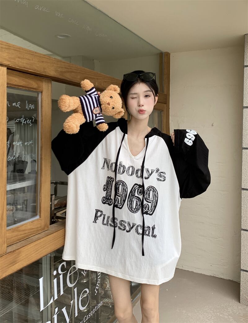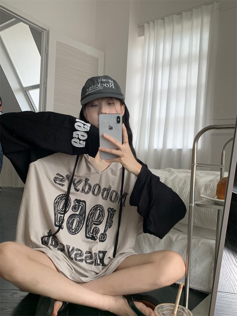Tシャツ サマー薄手スタンダードルーズフードトップス ロング レトロ 夏物 s576154877394326