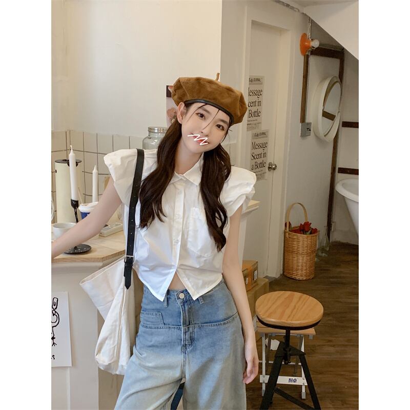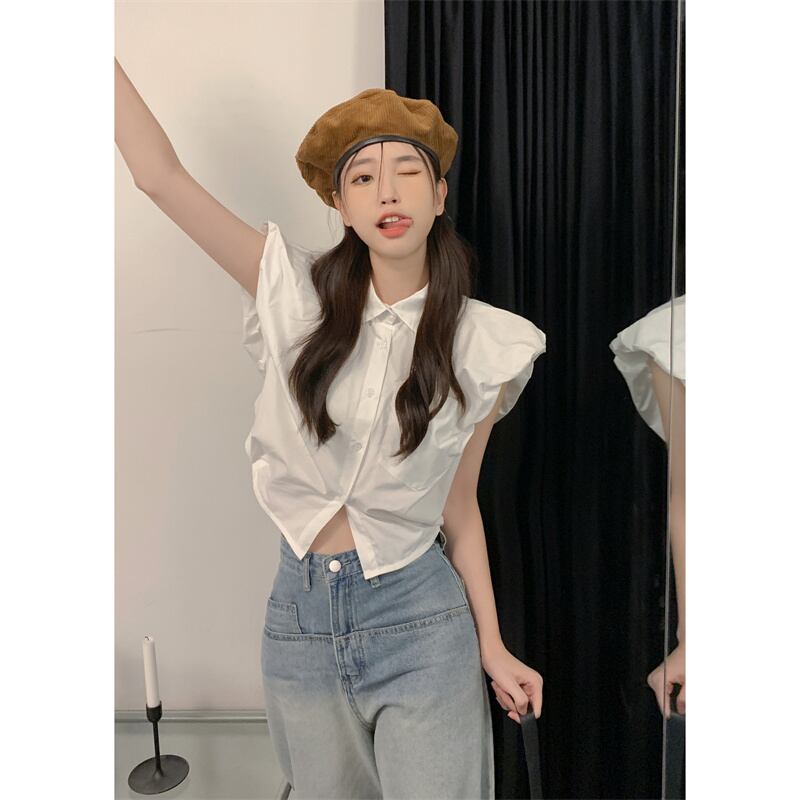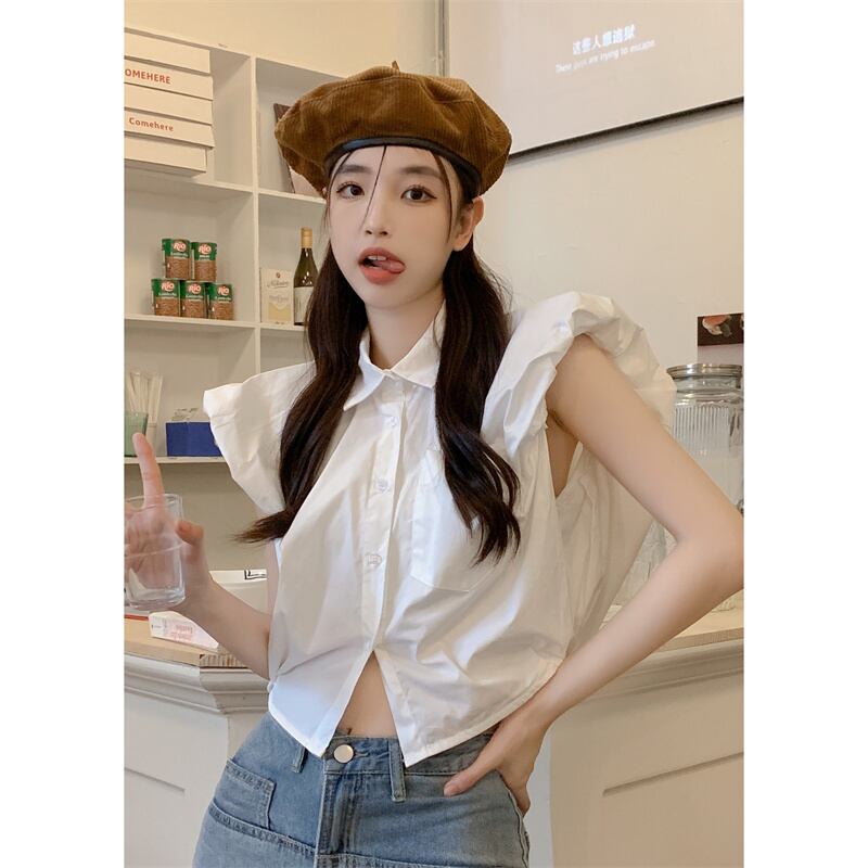 ホワイトノースリーブシャツ サマースタイルショートトップス 夏物 s576168651330364