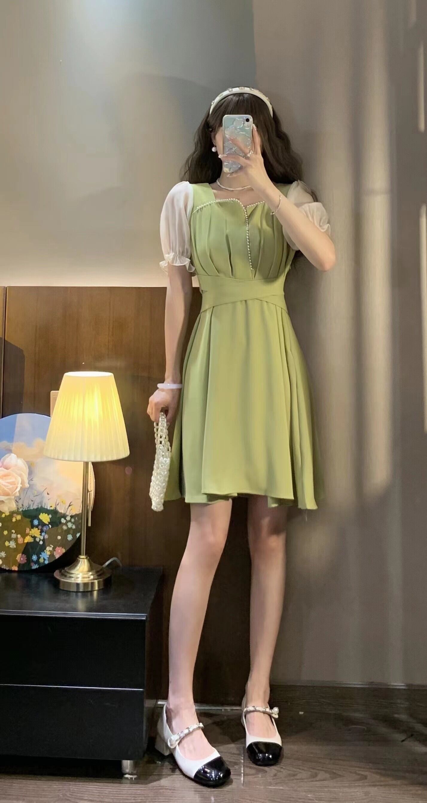 グリーンドレス サマーハイウェストウェストショートスカート 夏物 s576138535944307