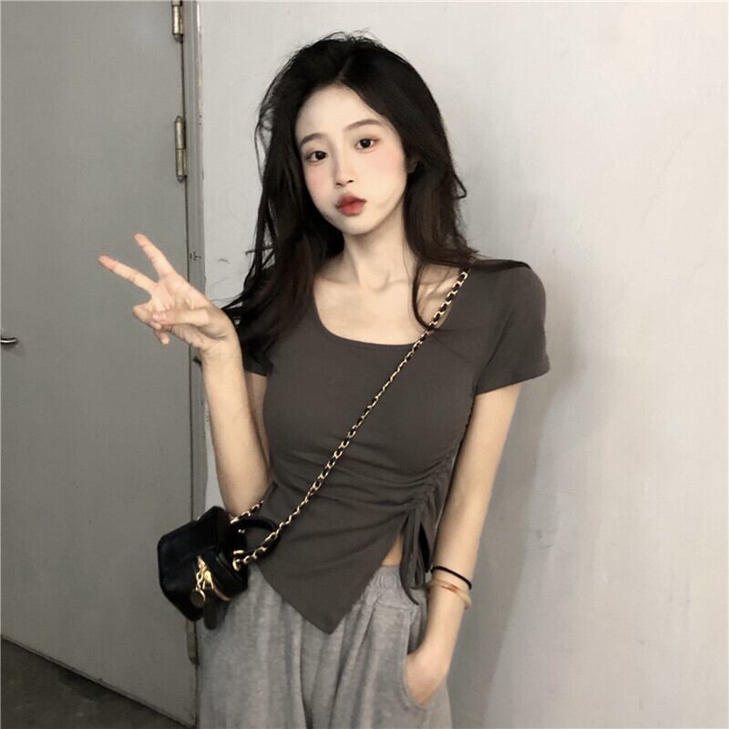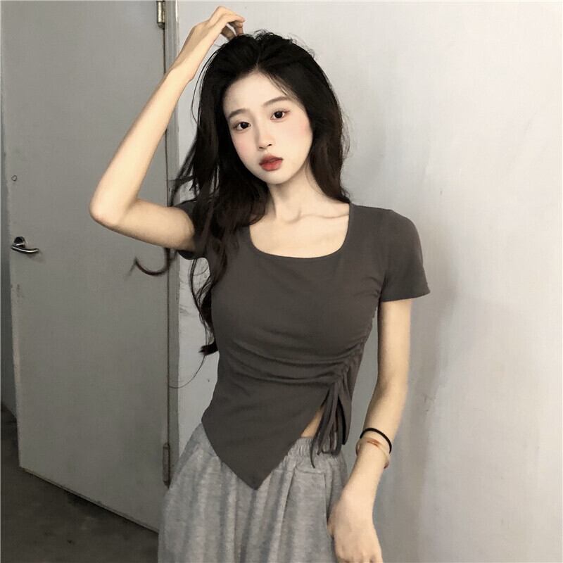 ショートTシャツ サマースリムカラートップス 夏物 スクウェア s576171641194744